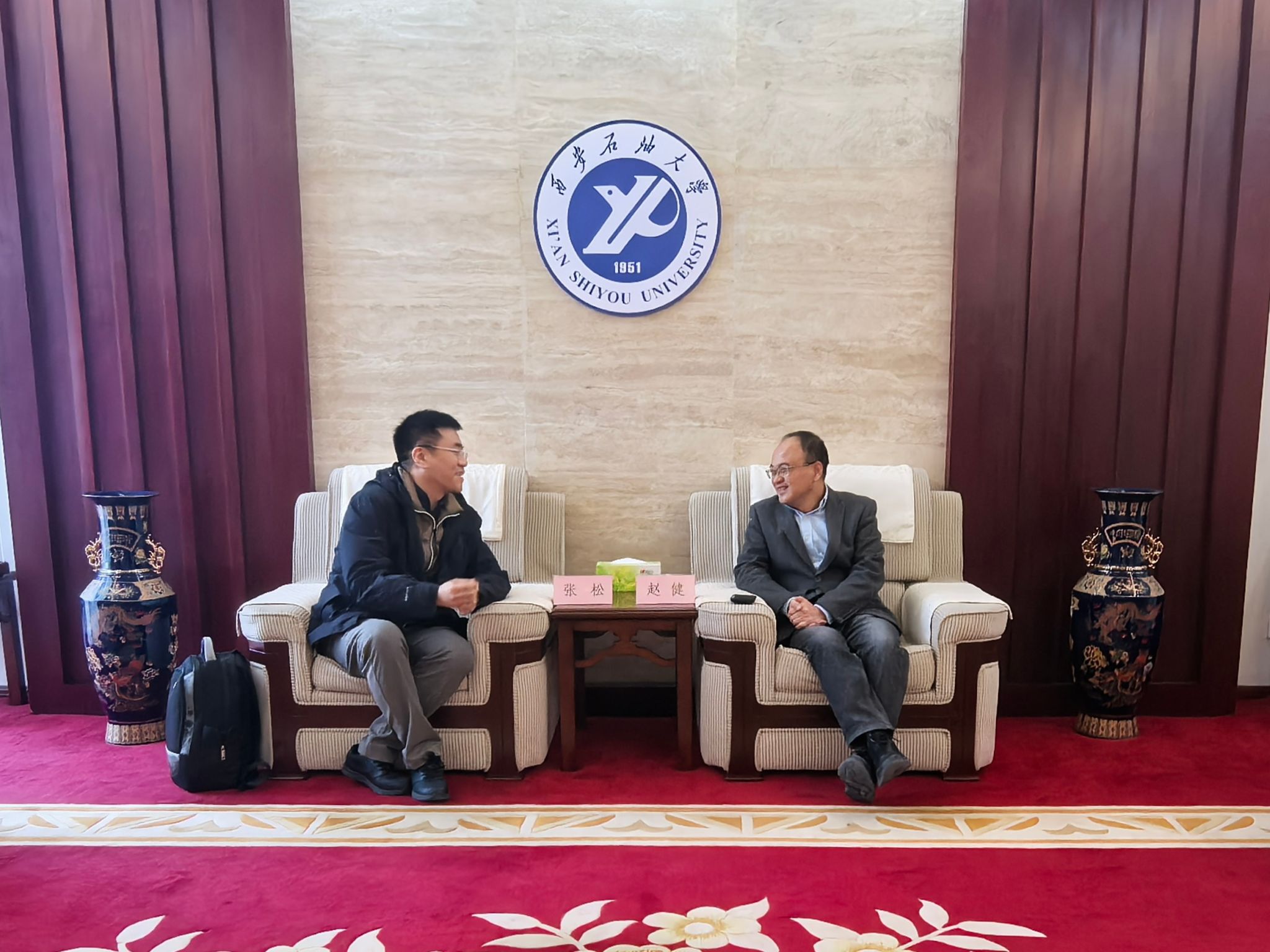 为科学谋划学校未来发展蓝图,全面提升整体办学水平,12月18日下午,学校在鄠邑校区第一会议室举办“十五五”规划专题报告会。上海软科研究院副院长张松博士受邀作了题为《beat365英国官方网站发展竞争力分析与提升策略》的专题报告。会前,副校长赵健会见了张松博士,双方就高校发展规划、竞争力提升等议题进行了深入交流。