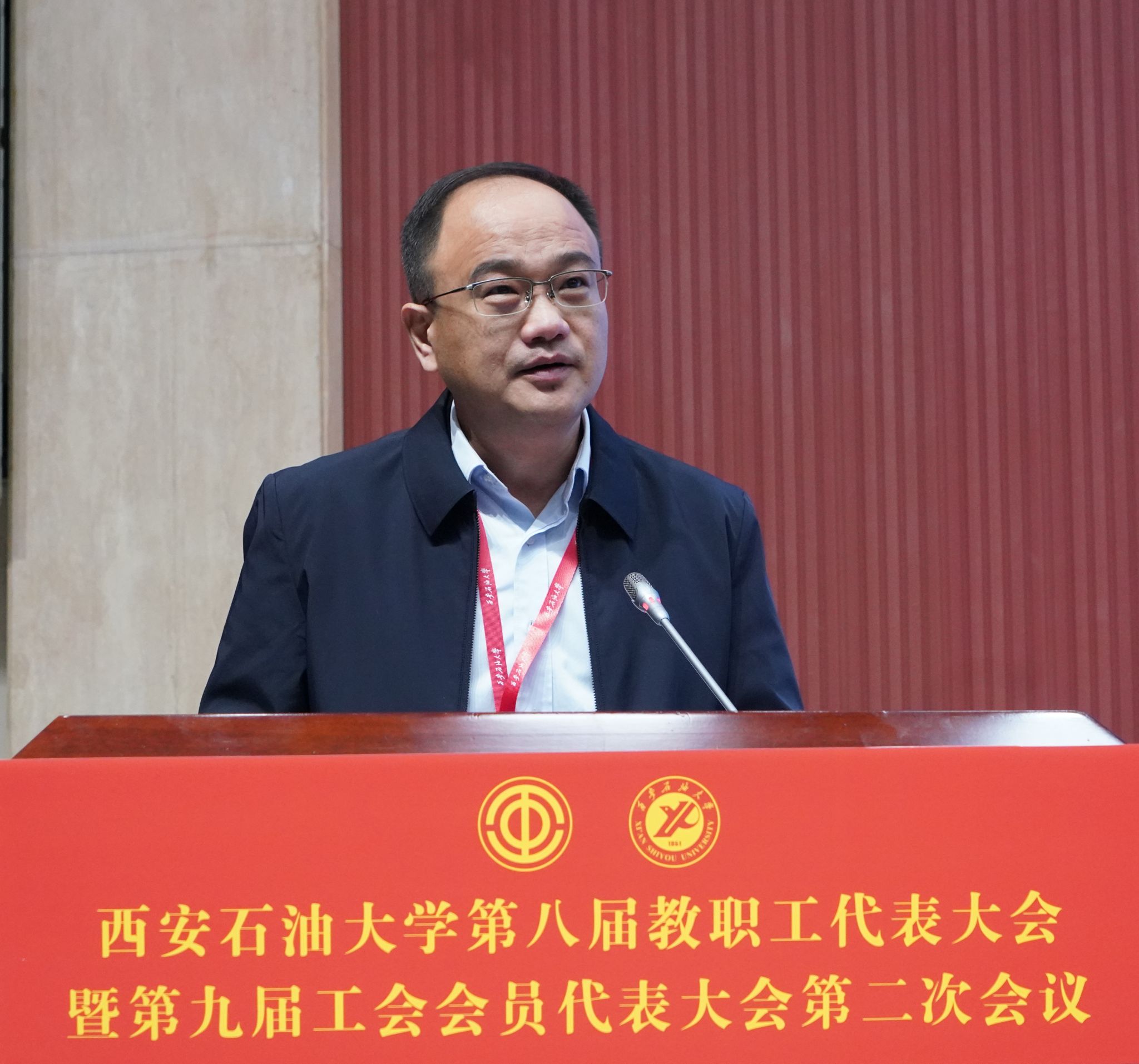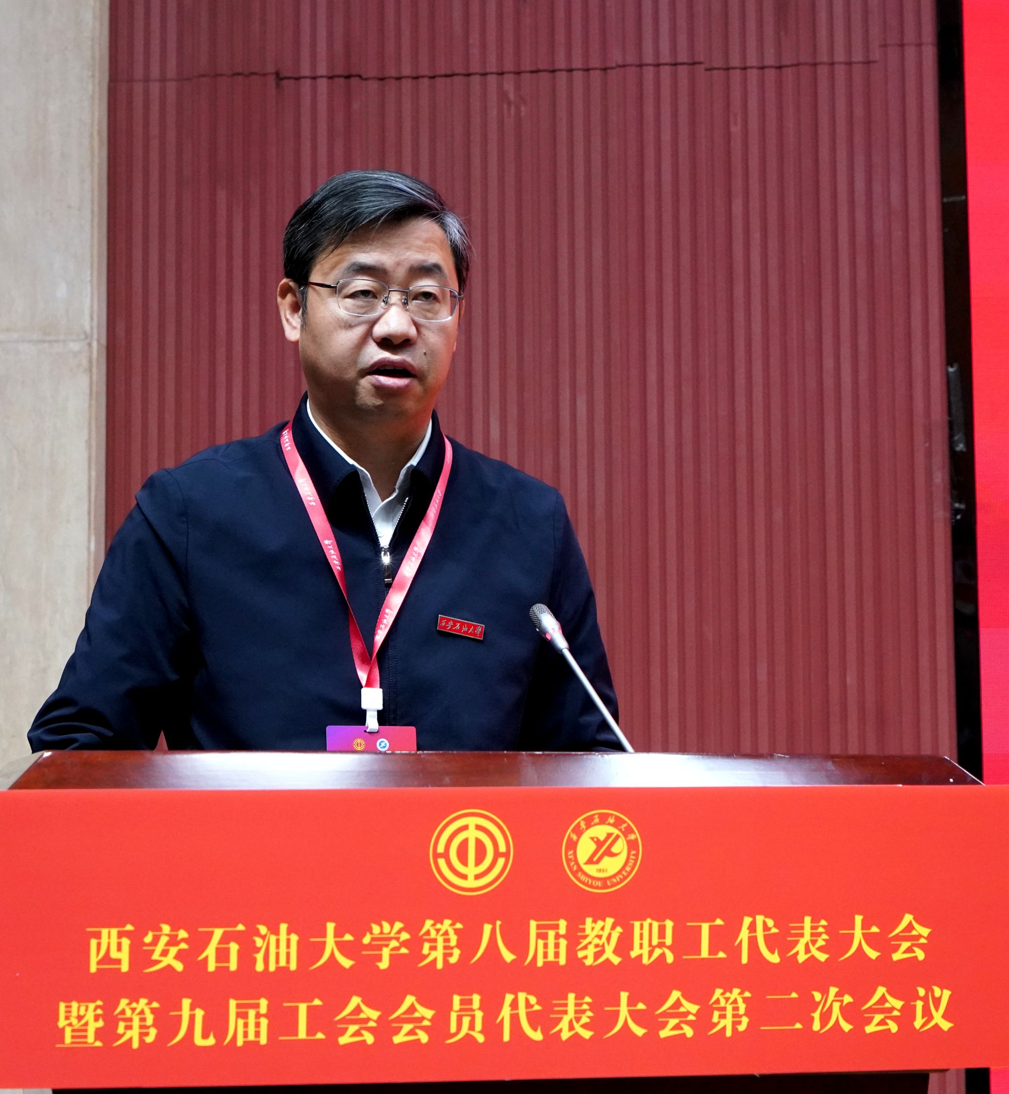 校长王进富作了《与岁功同辉以启程,携新程共远而擘画——年度报告暨“十五五”规划思考》的工作报告,他指出,本次教代会是在学校“十四五”冲刺收官的决胜之年,也是“十五五”谋篇布局的起势之年召开的一次重要会议,更是全面深化教育科技人才一体改革促进高质量发展的一次会议。报告从建设“三个西石大”的目标出发,全面回顾总结了2025年beat365所取得的成就,并指出2025年全校上下紧扣 “学科达标年、人才提升年、改革创新年” 主线,扎实推进 “六大行动”,各项事业呈现出稳中有进、持续向好的发展态势。特别是2024年以来,全校争做行动派、跑出加速度,在学科突破、科创增长、人才汇聚等方面实现多项新突破,为 2026 年发展积累了宝贵经验、奠定了坚实基础。报告精准分析当前发展形势,对照教育强国建设要求、行业转型发展需要、师生校友殷切期盼,科学部署2026 年及今后一个时期的重点任务,为学校朝着特色鲜明的高水平教学研究型大学目标迈进凝聚起磅礴力量。