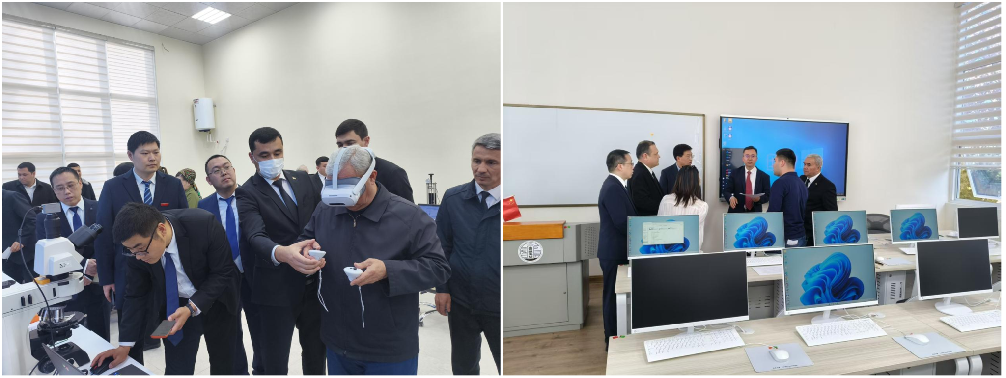 丁传峰对鲁班工坊建设取得的显著进展给予高度评价,他表示,中石油将继续支持工坊建设,希望深化校企协同合作,助力中土人才培养结出更多硕果。高彬围绕实验实训室工程质量规范、文化布设等提出专业建议,并重申阿姆河公司将发挥靠前优势,为项目高质量推进提供大力支持。郭小波、郑阳平分别向中石油代表团介绍地质实验室及信息技术实训室建设情况。