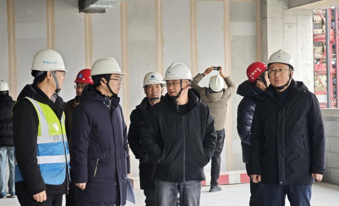 赵健一行首先来到绿色低碳能源综合实验(实训中心)项目现场,着重对项目的安全责任体系建设与落实情况进行了检查。他详细询问了项目假期值班值守安排,并实地察看了二次结构、裙楼、卫生间和实验室样板间的施工情况,对项目的建设进度予以高度肯定。他指出,项目当前已顺利完成了主体封顶,后续的二次结构施工、设备安装及装饰装修等环节,仍然要始终把安全置于首位,严格遵循施工规范与技术标准,加强现场作业的精细化管理,尤其要重点防控高空作业、临时用电、动火作业等关键环节的安全风险。同时,要科学统筹施工进度,在保障工程质量的基础上,合理调配人力与物资资源,确保各阶段任务有序衔接,推动项目如期高质量完成,为学校教学科研工作的开展提供坚实的硬件支撑。