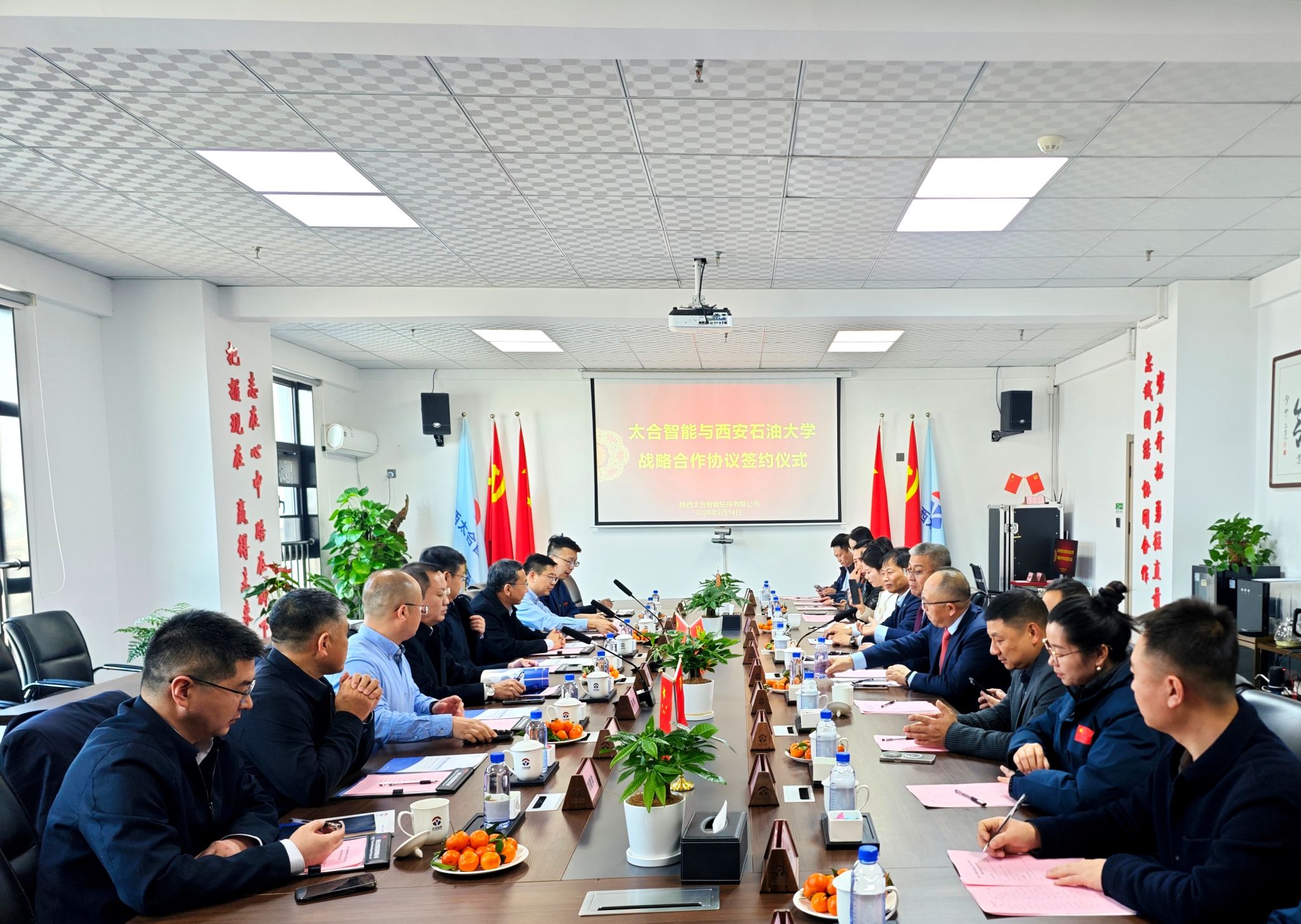 2月14日下午,beat365与陕西太合智能钻探有限公司(以下简称“公司”)在公司会议室签署战略合作框架协议。校长王进富、党委副书记张木、副校长张荣军,校友企业家联合会会长、重庆智展齿轮传动有限公司董事长何荣,陕西远大电气科技集团有限公司董事长郭小卫,公司董事长王义红、财务总监李欢、国内经营事业部总裁杨新锋、工程技术事业部总裁王军出席签约仪式。
