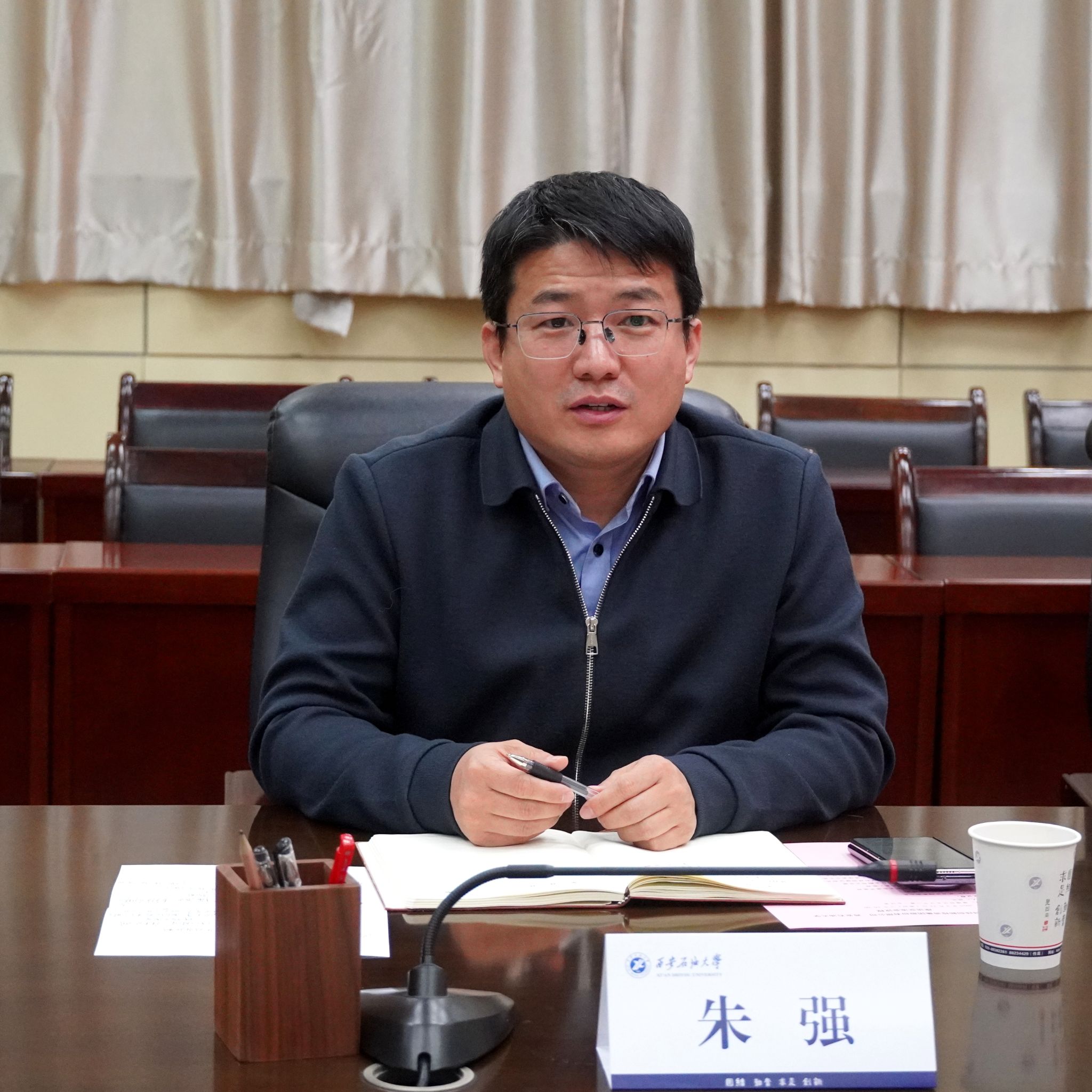 张荣军对朱强一行到访交流表示热烈欢迎,并简要介绍了学校优势特色学科以及科研成果等情况。他指出,学校始终以服务国家能源战略和区域经济发展为己任,近年来在科技创新、成果转化等方面取得显著成效,希望通过此次交流,进一步深化与秦创投集团的合作,推动更多科研成果落地转化。