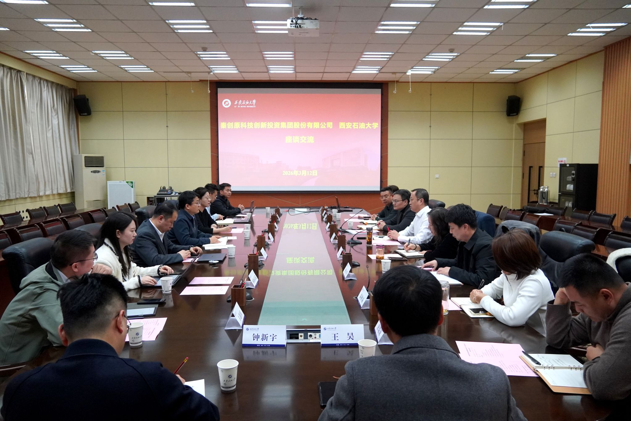 交流讨论环节,双方就技术转化路径、资金对接机制、共建孵化平台等议题交换意见。学校表示,将加快梳理可转化科研项目清单,与秦创投集团建立“项目—资本—市场”精准对接机制;秦创投集团提出,将针对学校重点技术领域设立专项投资计划,提供“投贷联动”综合金融服务。