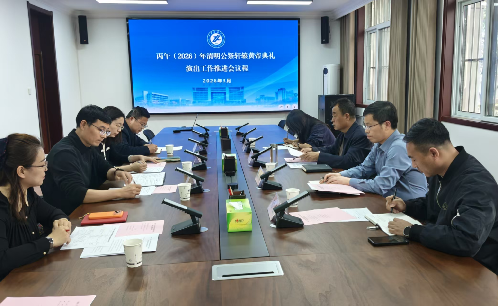 3月12日下午,丙午(2026)年清明公祭轩辕黄帝典礼演出工作推进会在鄠邑校区第四会议室召开。校党委副书记程永清出席会议并讲话。党委宣传部、党委学生工作部、校团委、人事处、教务处、音乐系等单位负责人参加会议。