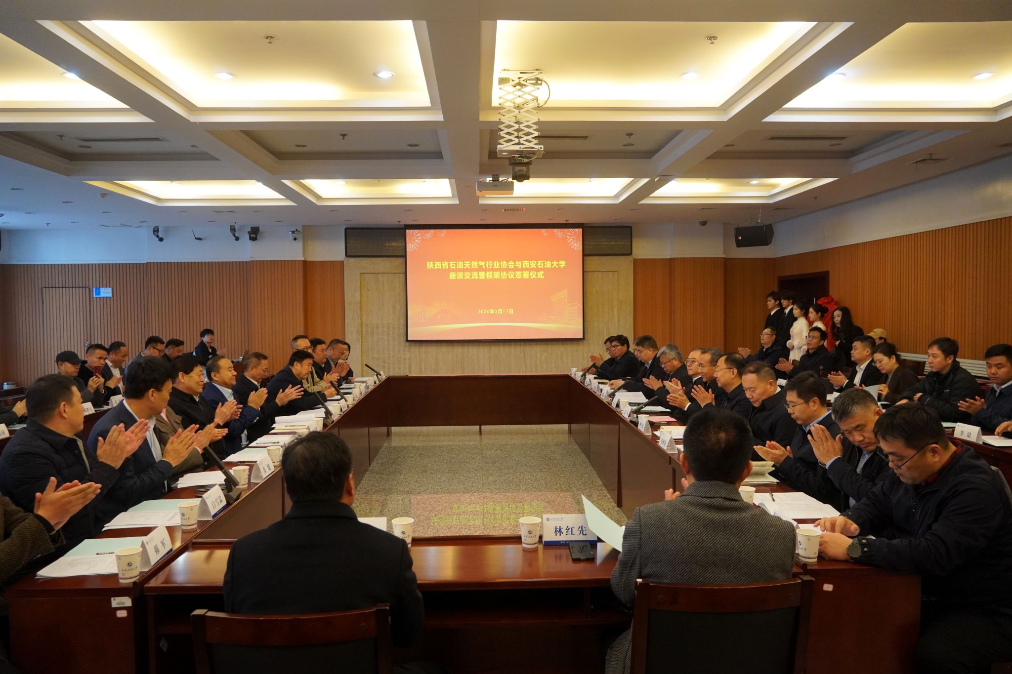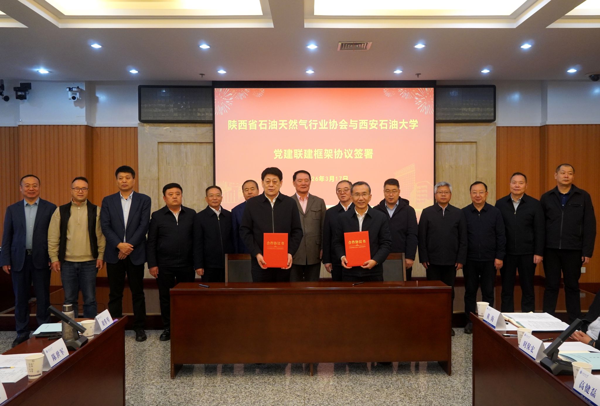3月17日下午,beat365与陕西省石油天然气行业协会(以下简称“协会”)在鄠邑校区开展交流座谈,并签署《战略合作框架协议》与《党组织联建共建框架协议》。协会会长魏云章、党建总顾问魏文章、党支部书记赵占明,beat365党委书记常江、副校长张骁勇、种宇宏出席会议。会议由校党委副书记张木主持。