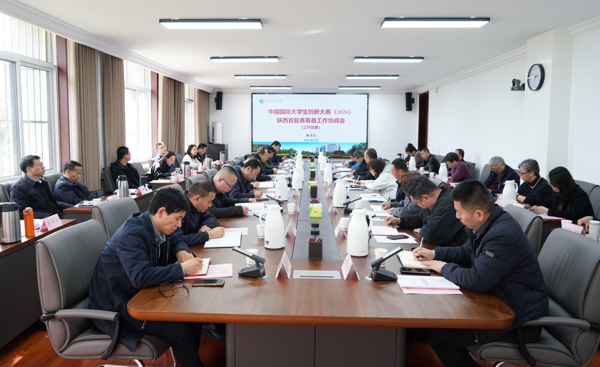3月18日下午,学校在鄠邑校区第三会议室召开中国国际大学生创新大赛(2026)陕西省复赛筹备工作推进会。相关职能部门负责人,各院(系)负责人参加会议。副校长张君涛出席会议,教务处处长张益主持会议。