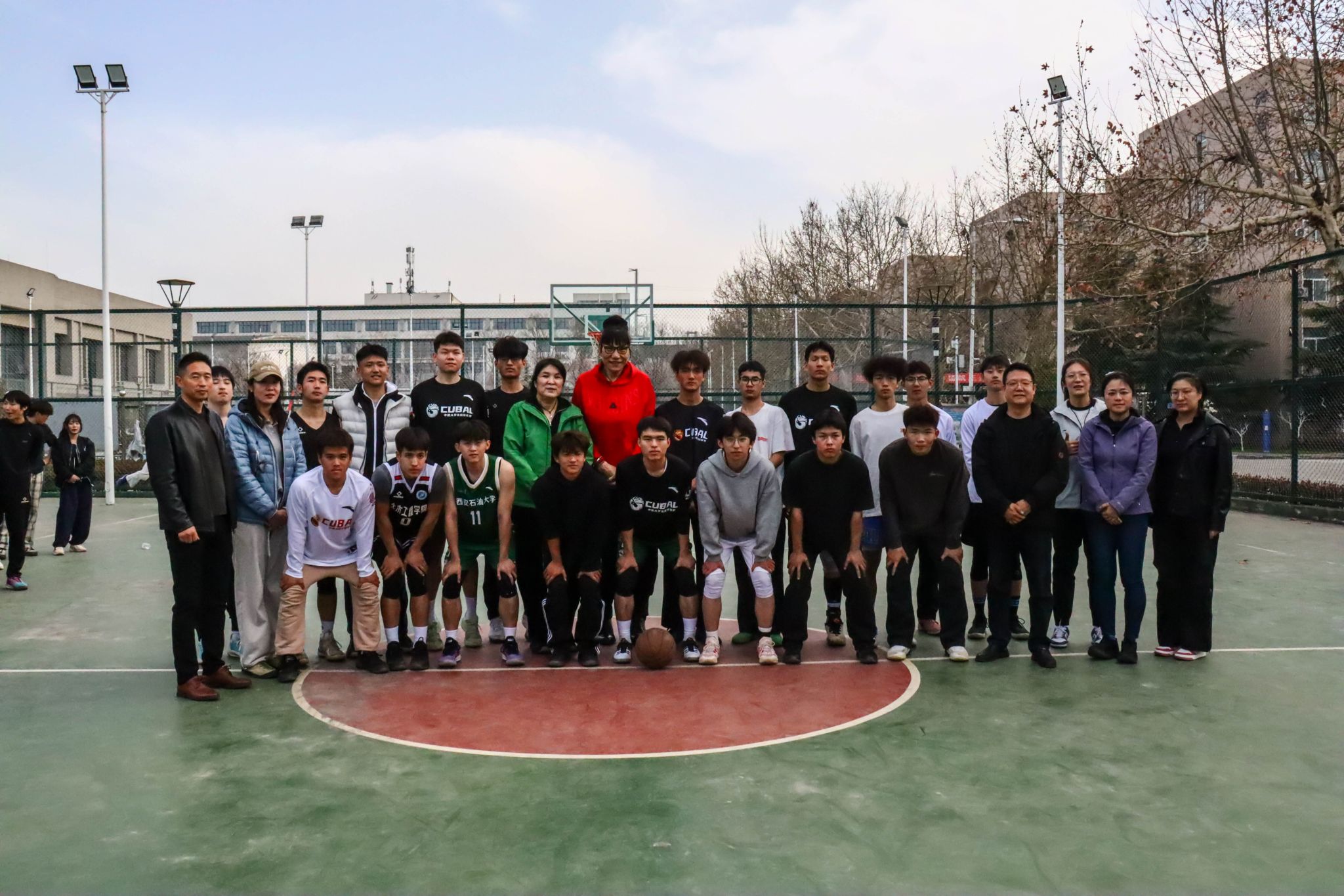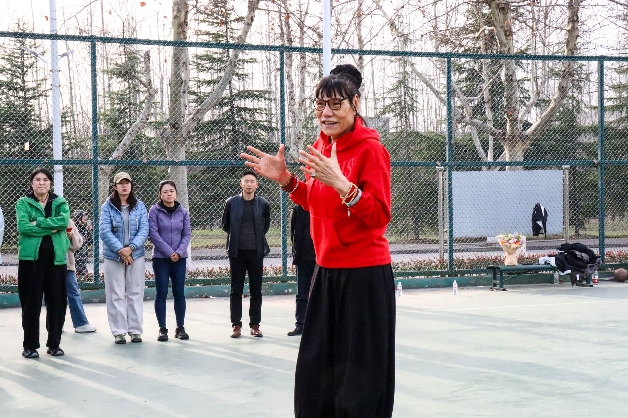 参观结束后,郑海霞前往东体育场篮球场,现场指导beat365篮球队训练,并与队员们面对面交流。她结合职业赛场实战经验,分享训练技巧与比赛心得,叮嘱队员们夯实基本功、强化团队协作,在训练与比赛中团结奋进、勇攀高峰。