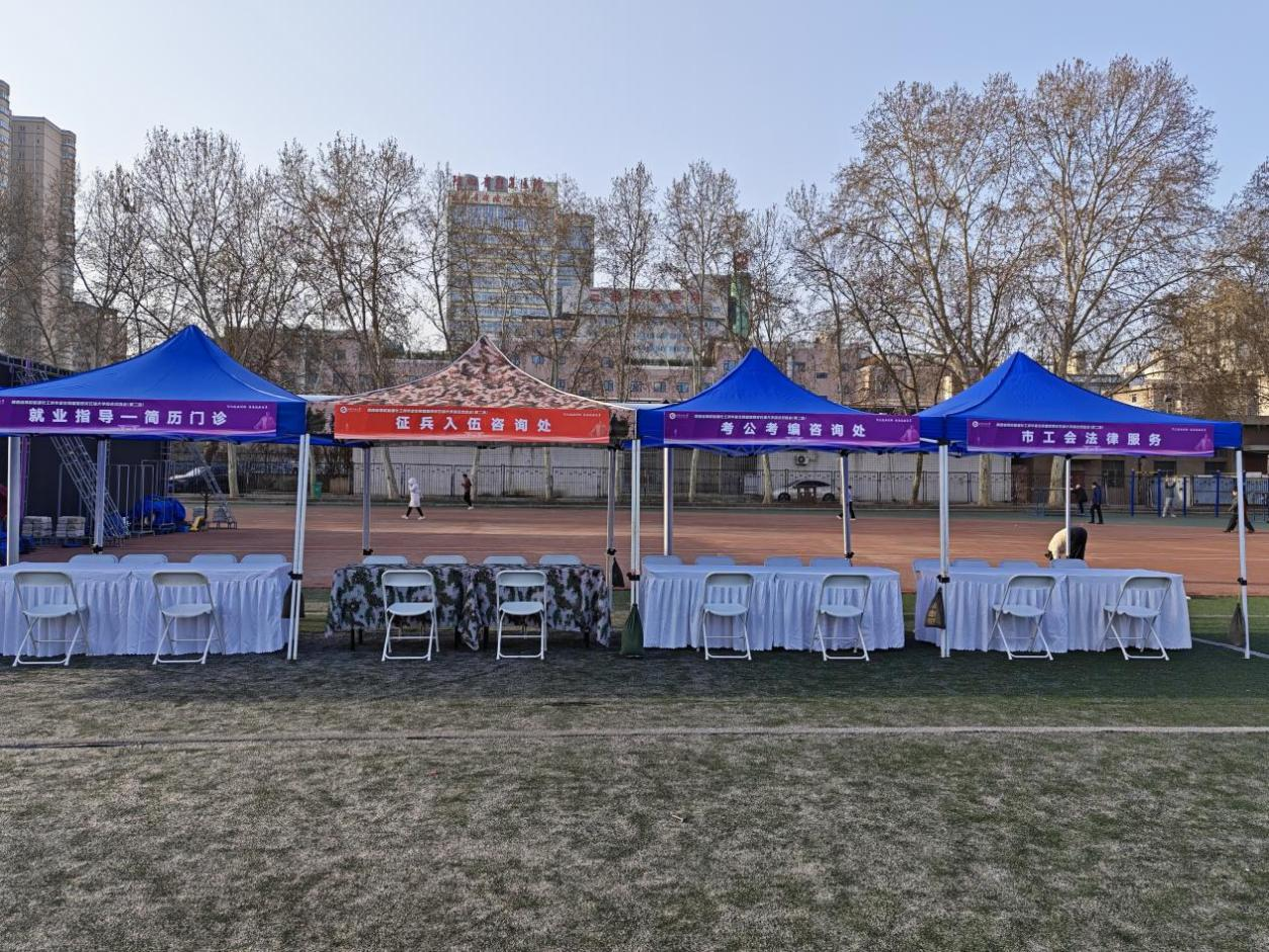 为提升供需对接效率与求职体验,会场设置了“入场签到”“就业指导”“西安市总工会法律援助”“征兵入伍咨询点”“后勤服务保障点”等一站式功能服务区,现场服务1200余名毕业生。