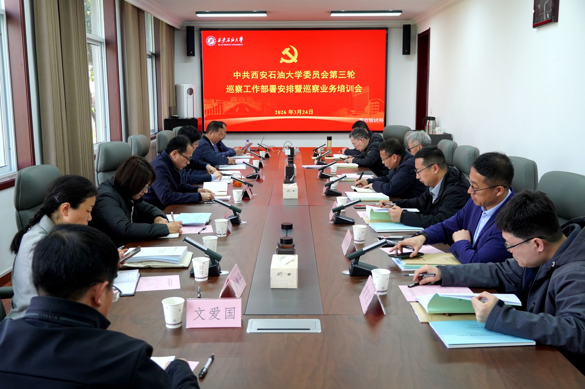 3月24日下午,学校党委第三轮巡察工作部署安排会暨巡察业务培训会在鄠邑校区办公楼第五会议室召开。校党委副书记、纪委书记、监察专员王辉强出席会议并讲话,党委组织部、党委巡察工作办公室负责人以及第三轮巡察第一巡察组、第二巡察组全体成员参加会议。