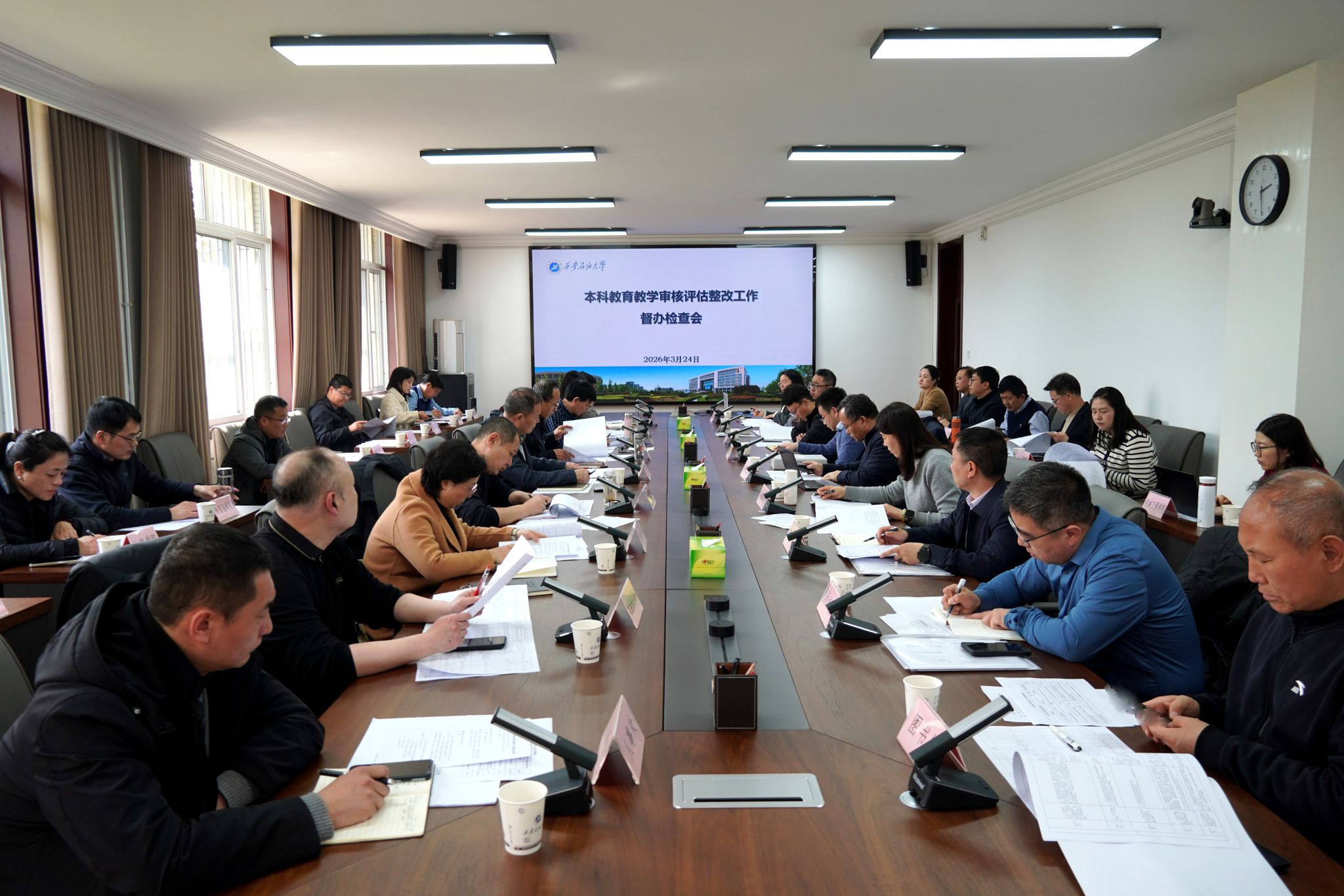 3月24日下午,学校在鄠邑校区第三会议室召开本科教育教学审核评估整改2026年第一季度督办检查会。副校长张君涛出席会议,会议由高教研究与评估督导中心主任时保宏主持。