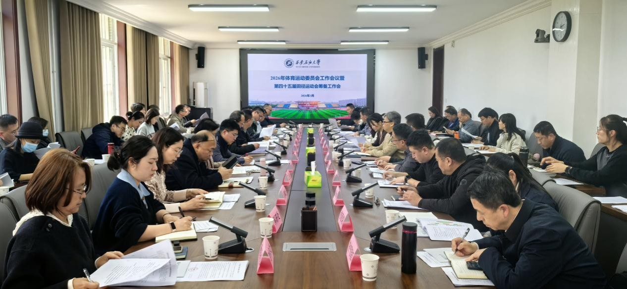 会上,体育学院院长李寿邦汇报了2025年学校体育工作和2026年学校学生体育竞赛工作计划。校工会主席吴民生汇报了2025年教工体育工作和2026年教工体育工作计划。体育学院群体竞赛办公室负责人张乐强汇报了第四十五届运动会筹备工作。