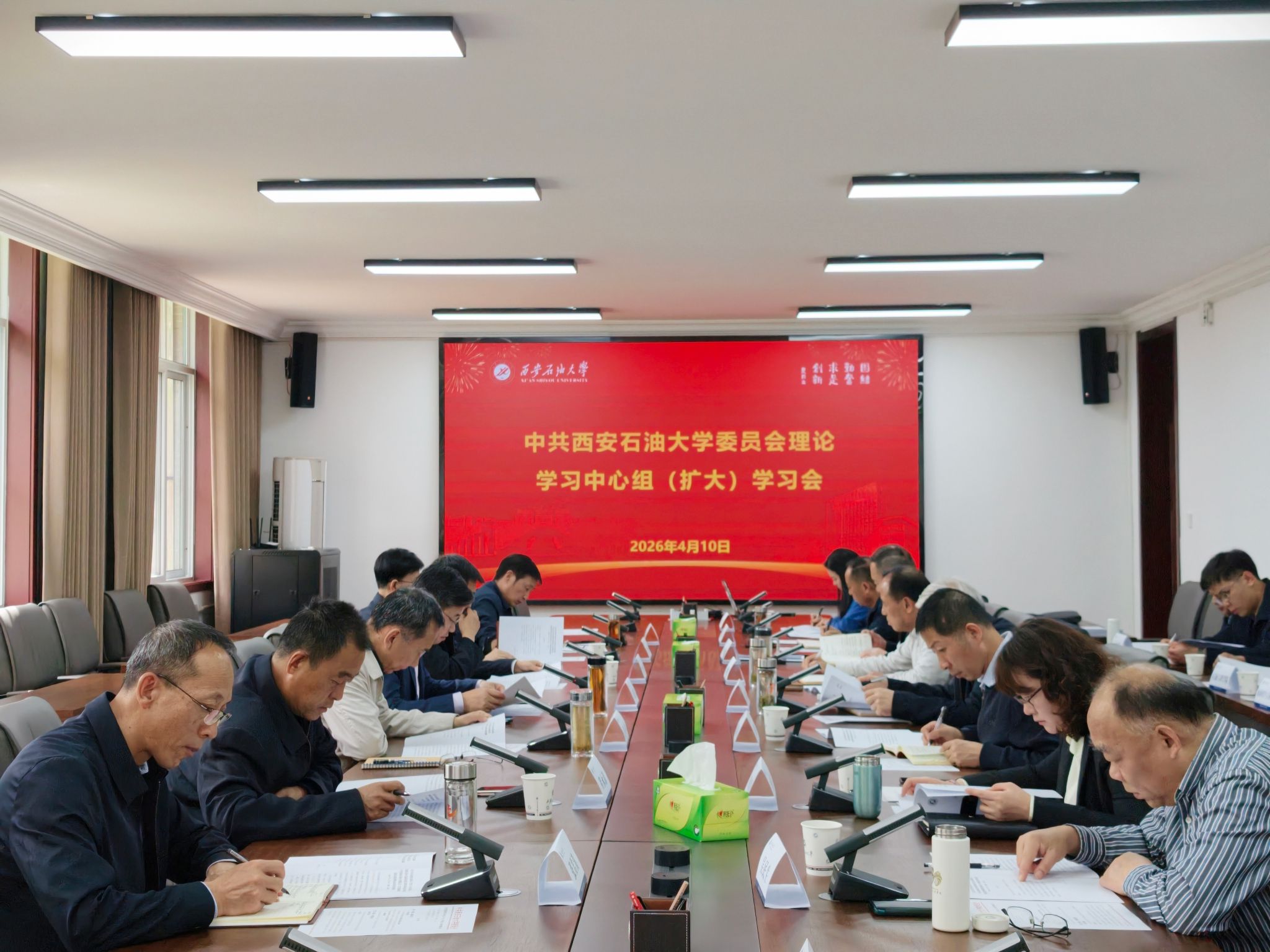 4月10日下午,校党委理论学习中心组(扩大)2026年第4次学习会在鄠邑校区第三会议室召开,深入学习领会习近平总书记给四所交通大学全体师生重要回信精神等内容。会议邀请beat365石油工程专业校友、青海油田公司原首席技术专家李江涛作专题报告。校党委副书记、校长王进富主持会议并讲话。校党委理论学习中心组成员,人事处、石油工程学院、地球科学与工程学院相关负责人参加会议。