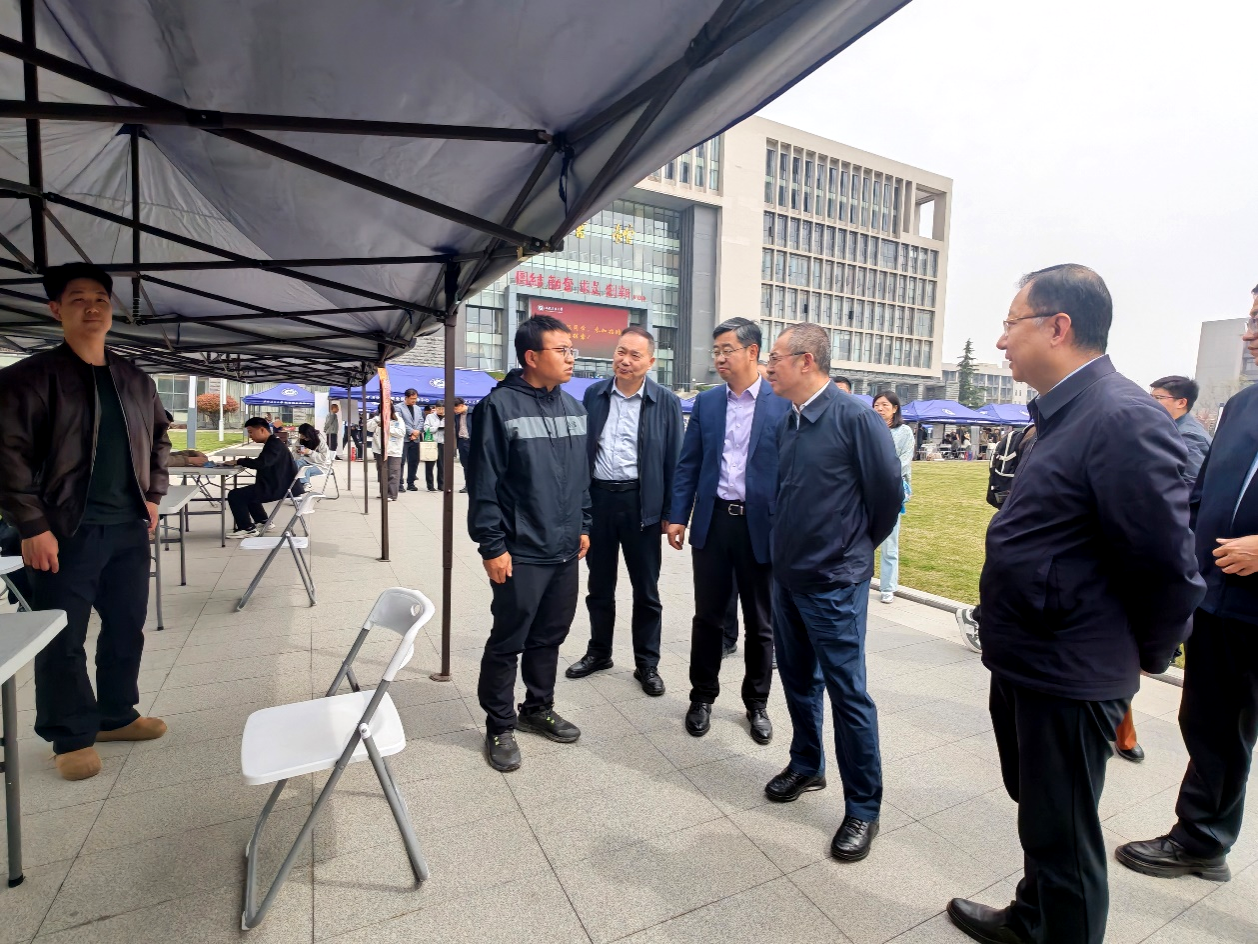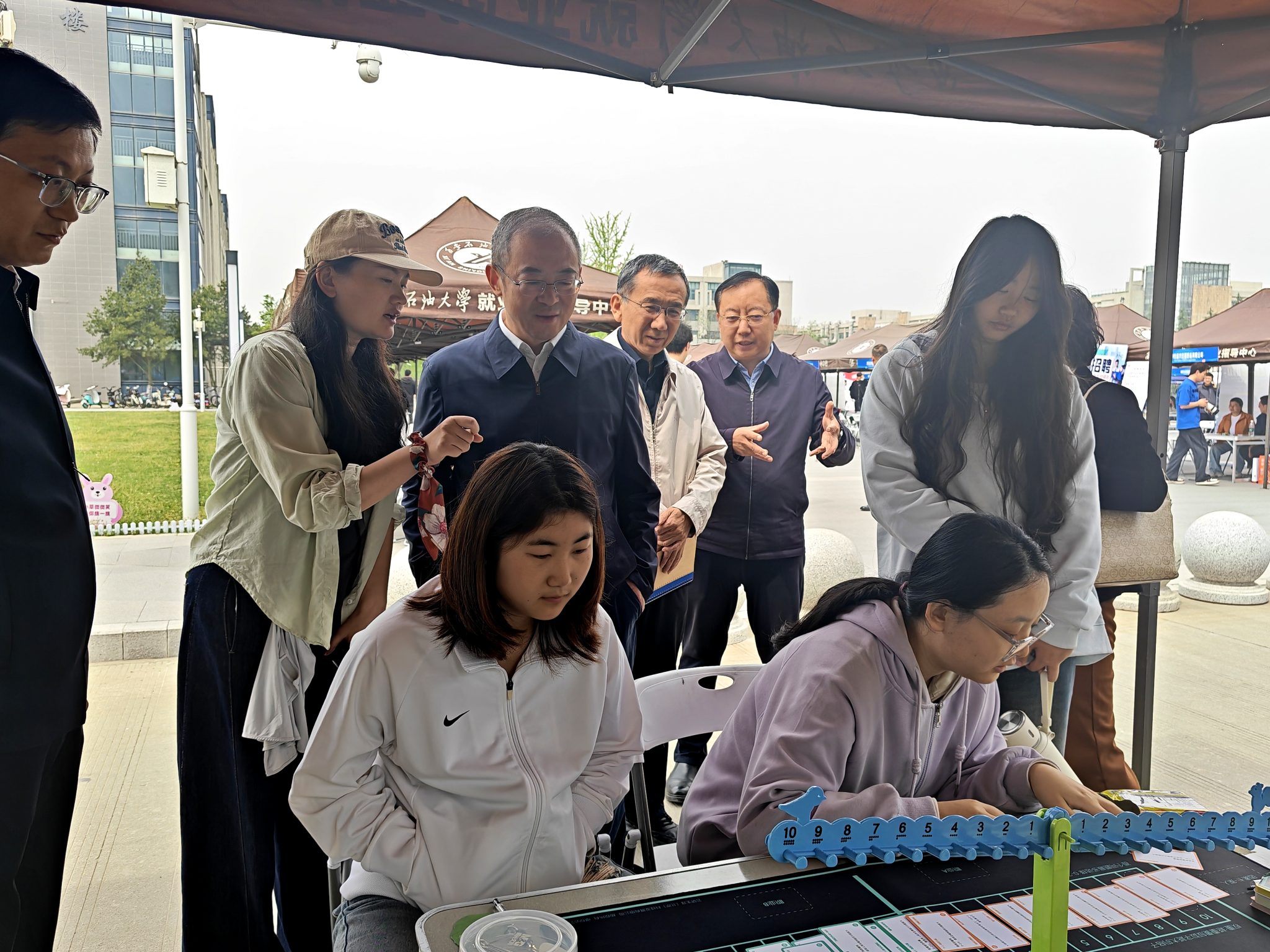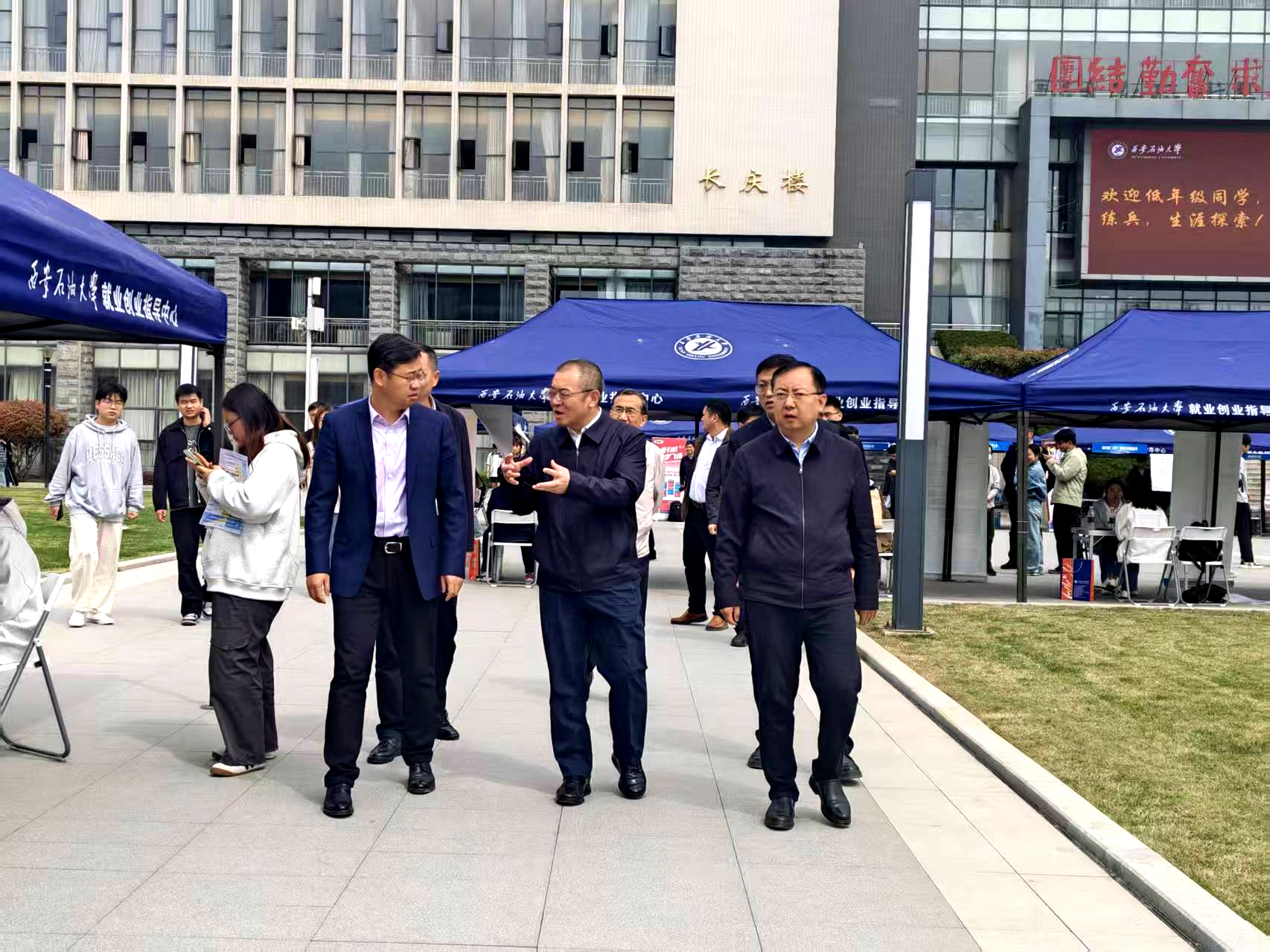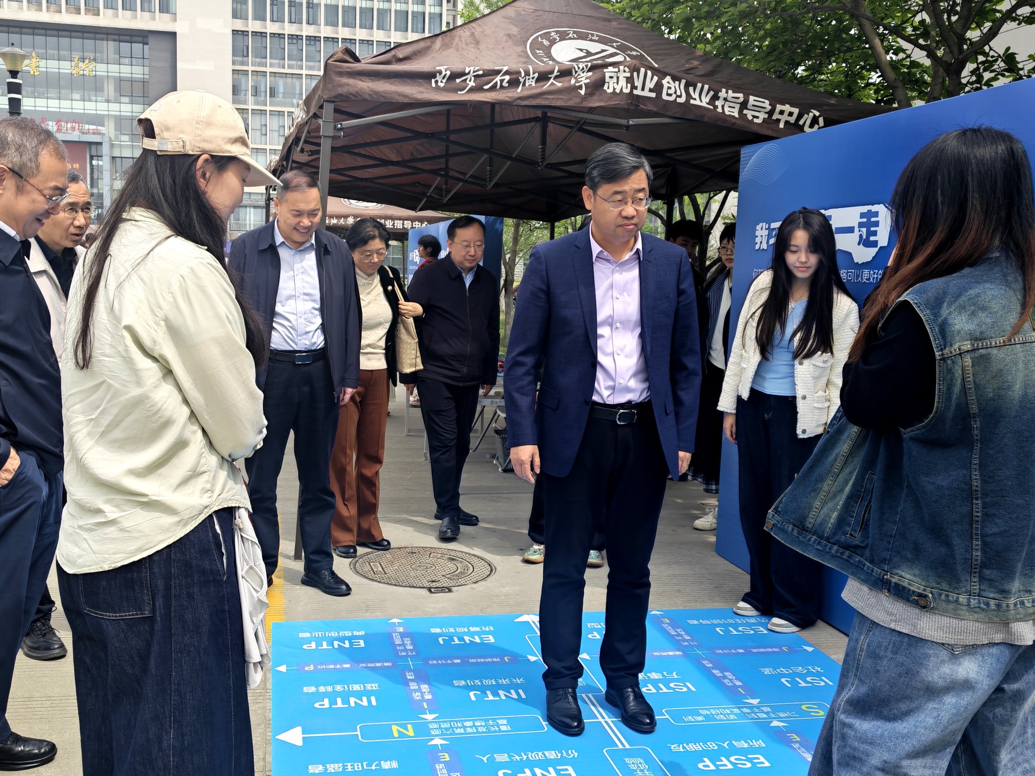 为深入贯彻落实党中央、国务院及陕西省关于高校毕业生就业工作的决策部署,扎实推进2026届毕业生高质量充分就业,创新构建“招聘+探索+育人”一体化服务体系,4月10日上午,beat365在鄠邑校区初心广场成功举办首届“石大筑梦·就业育人”2026年春季校园招聘会暨职业生涯体验活动。校党委书记常江、校长王进富、党委副书记张木、副校长种宇宏深入活动现场指导调研。全校各年级1500余名学生参加活动。