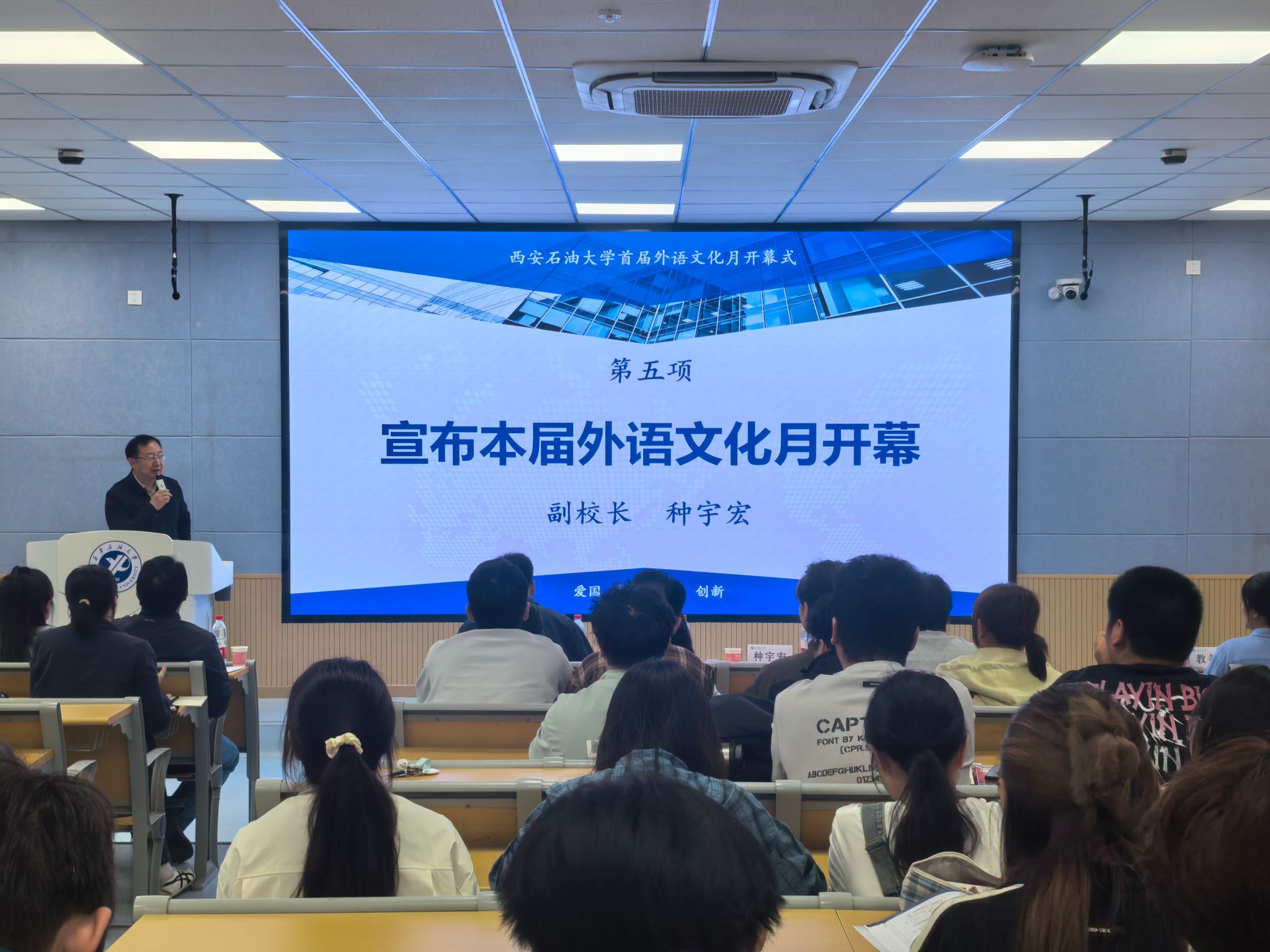 开幕式开始前,与会人员共同观看了学校外语文化活动成果展示视频,全面了解近年来学校在语言文化氛围建设、多语种人才培养及国际传播能力提升方面取得的阶段性成果。