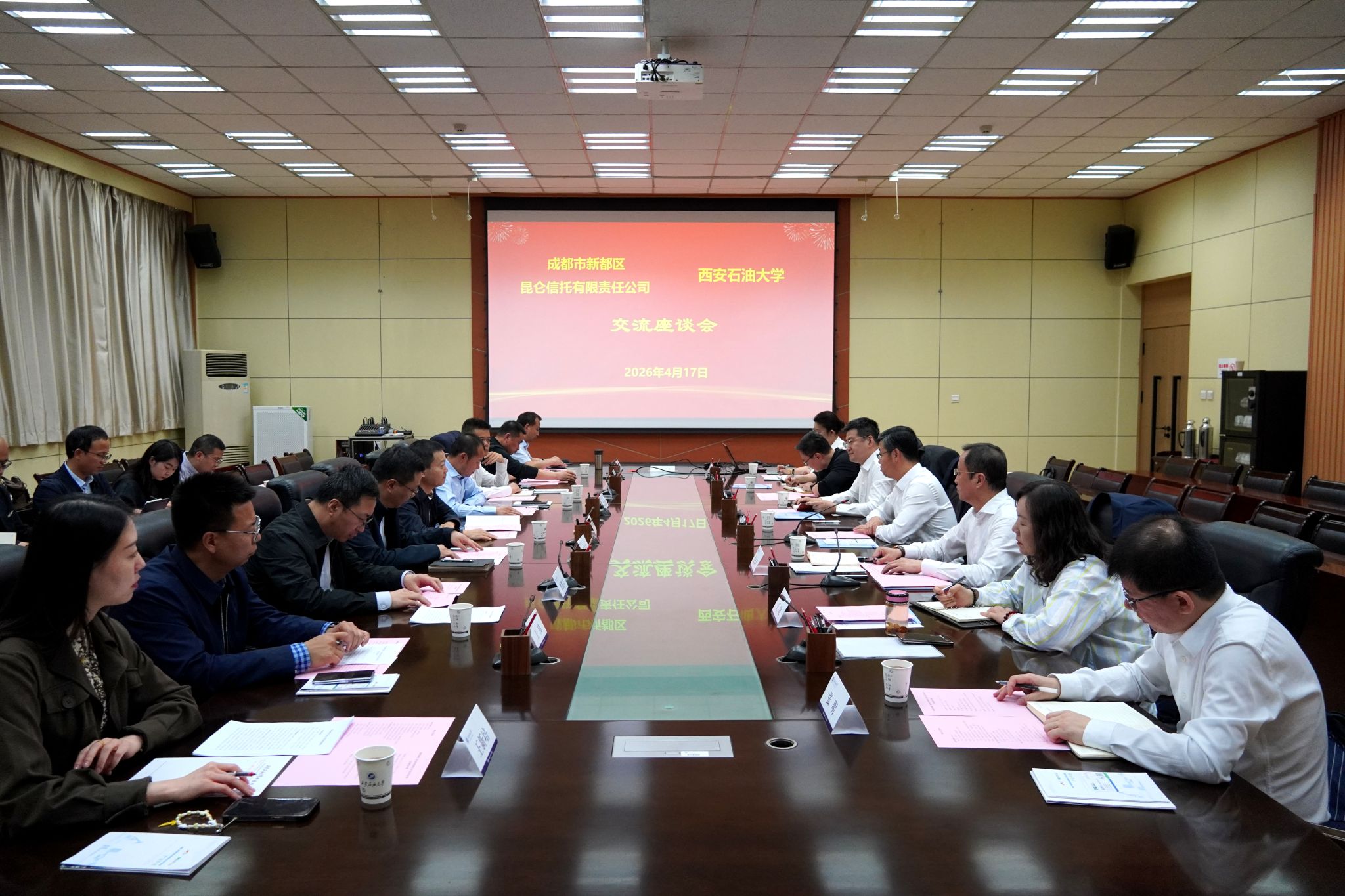 成都市新都区组织部、新都高新区主要部门负责人,昆仑信托有限责任公司西北地区主要负责人,学校科研处、石油工程学院、边际油气开发技术研究院、西安石大资产经营有限公司等相关单位负责人参加会议。
