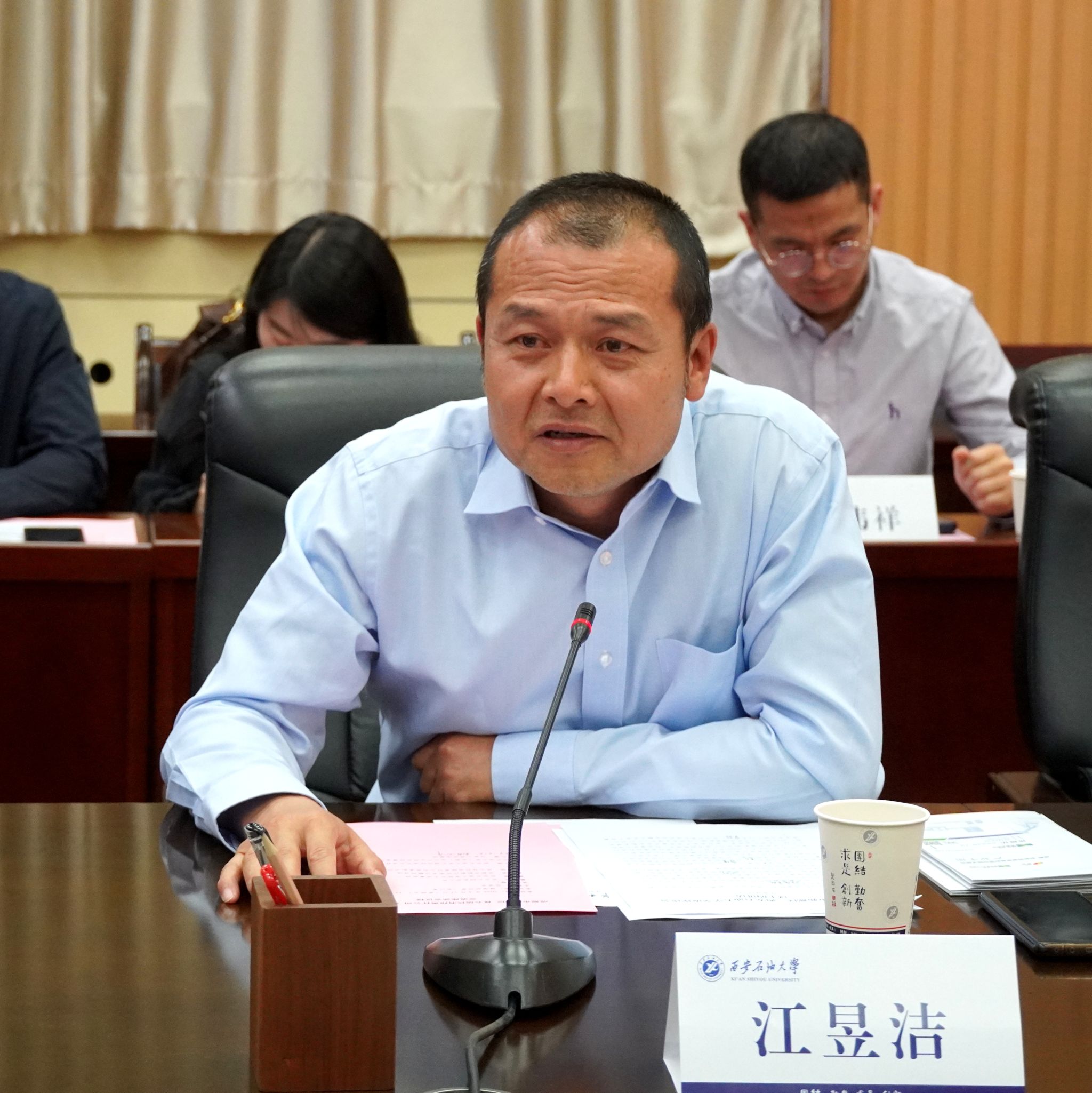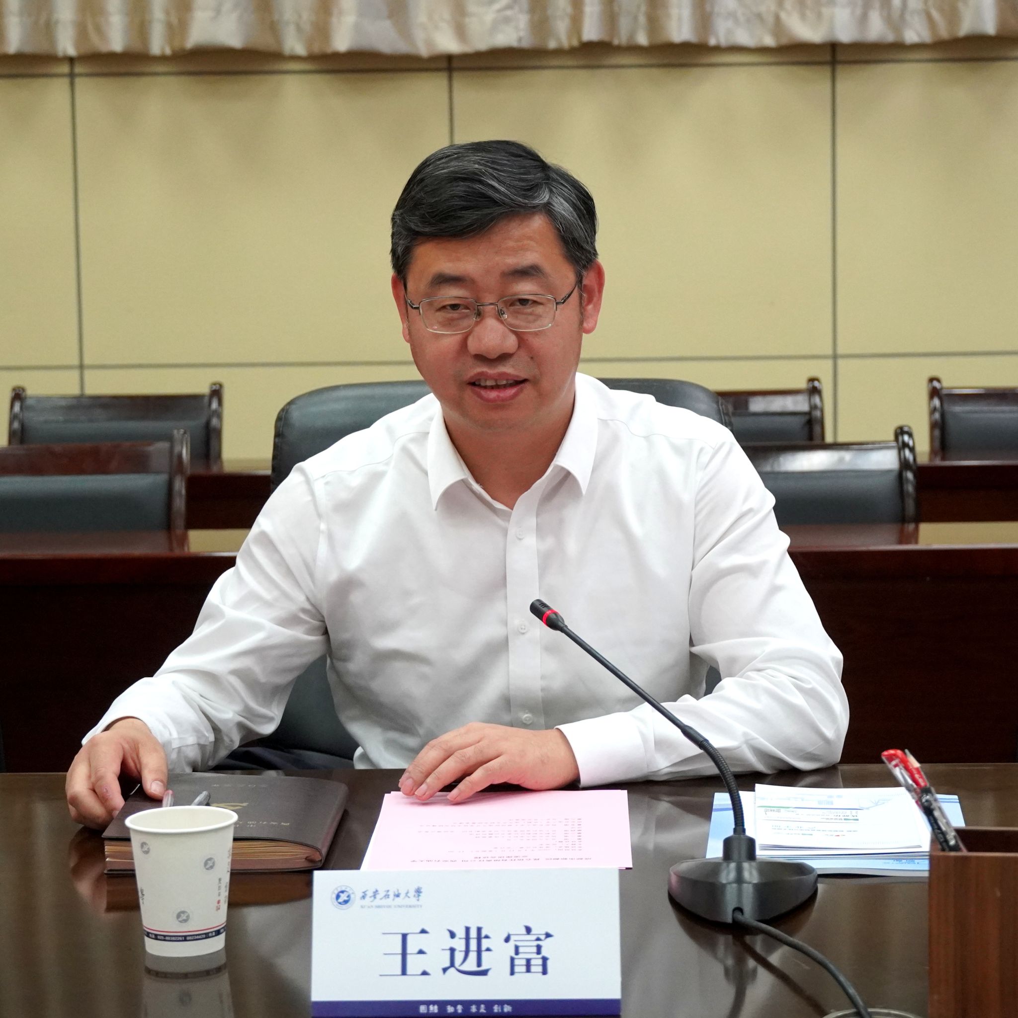 王进富在致辞中对魏柯、江昱洁一行的到来表示欢迎,并详细介绍了学校的发展历程、学科特色及科研优势。他表示,此次与成都市新都区、昆仑信托携手共建油气产业研究院,是学校服务国家能源战略、推动科技成果转化的重要实践。期待通过三方合作,将学校的科研优势与地方的产业需求、企业的资本优势相结合,共同打造油气产业创新高地。