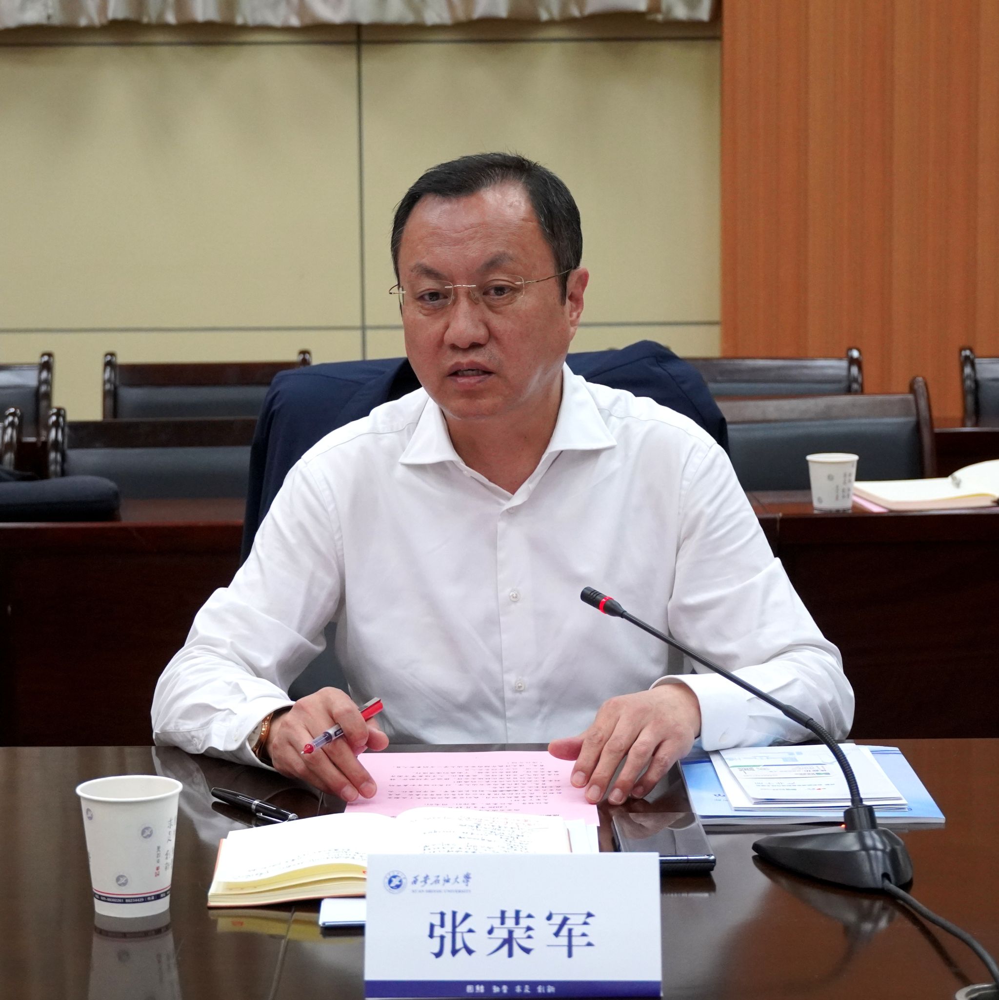 张荣军在主持中表示,此次座谈会是深化政校企合作、共谋油气产业创新发展的重要契机。他强调,学校始终坚持以服务国家能源战略和区域经济社会发展为己任,期待通过三方深入交流,进一步凝聚共识、明确方向,在油气产业研究院建设、科技成果转化、人才培养等领域开展全方位、深层次合作,共同为推动能源产业高质量发展贡献智慧和力量。