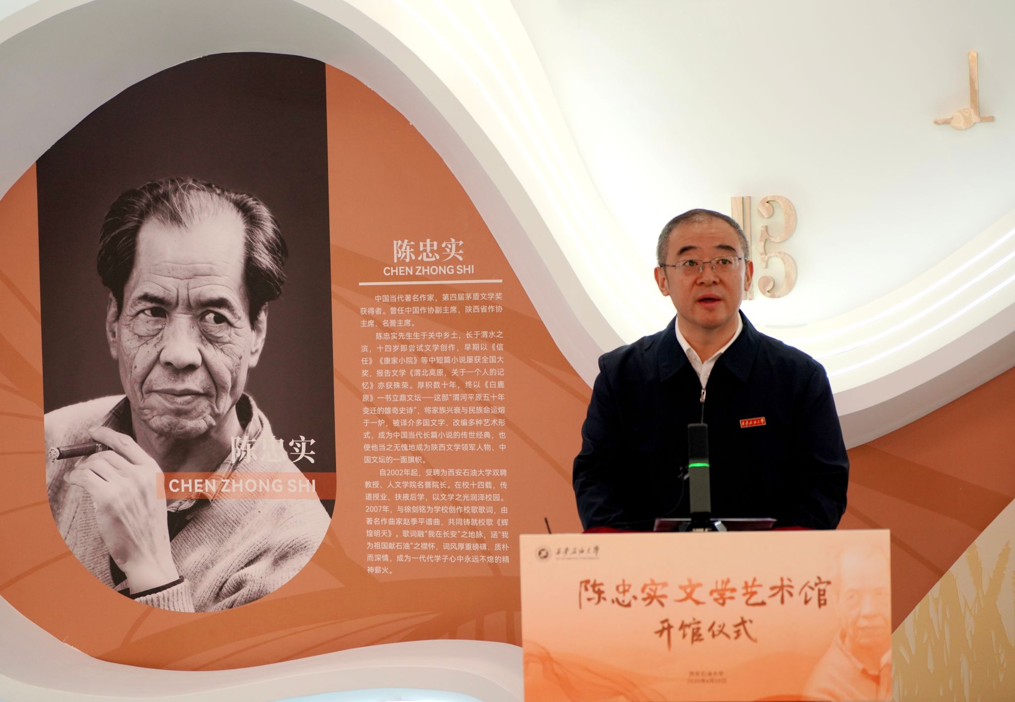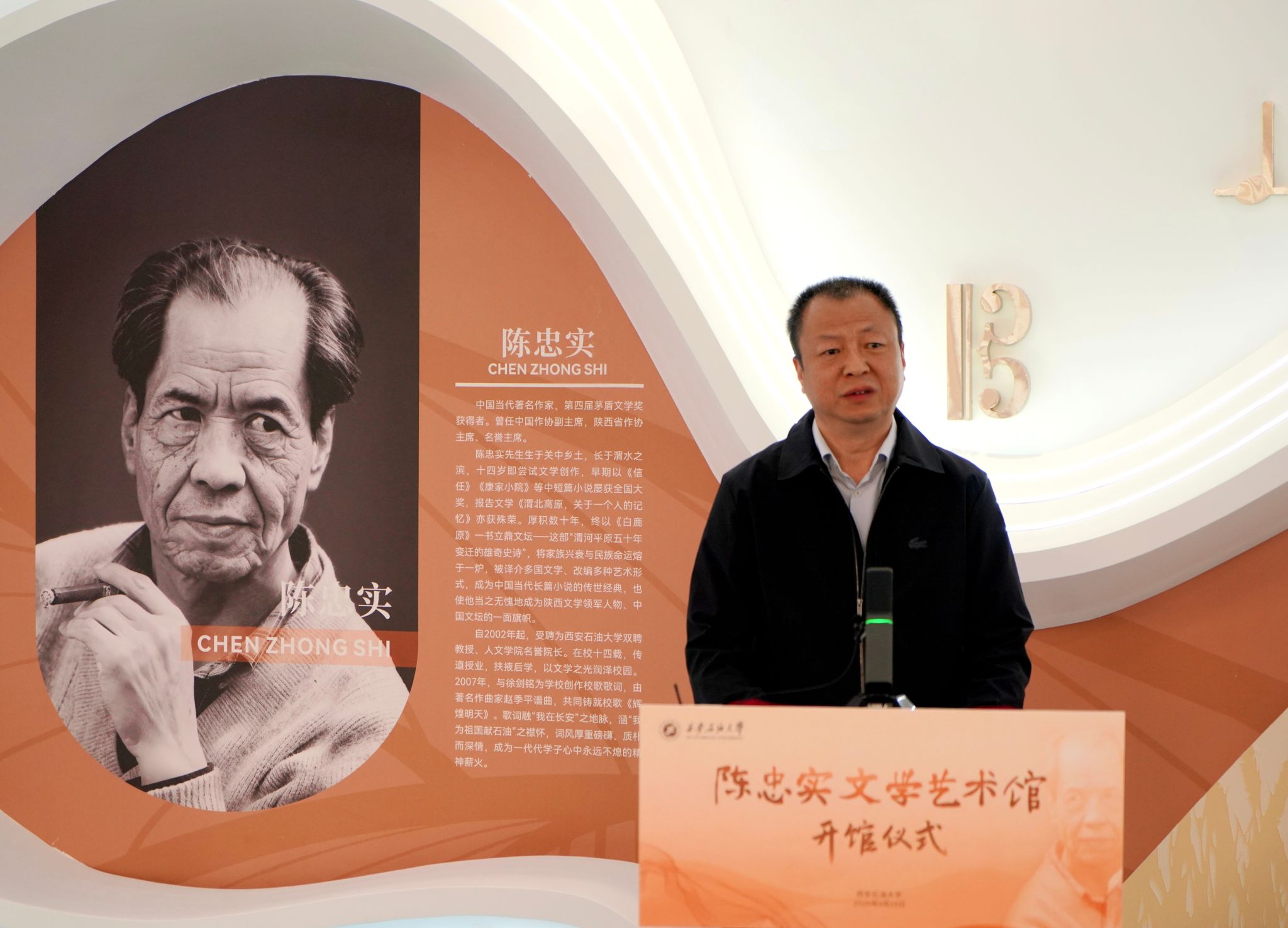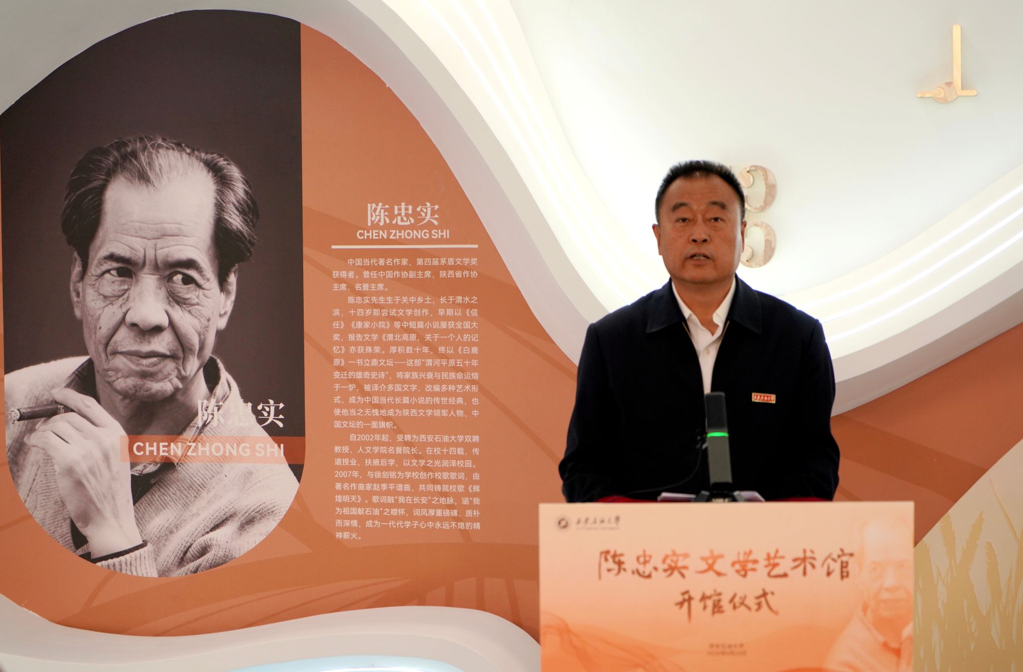 陈海力在发言中对学校积极推动陈忠实文学艺术馆的建设表示衷心感谢,并深情回顾了父亲陈忠实与学校的不解之缘。他希望这座文学艺术馆能够成为校园里一道温暖的人文风景,让更多的青年学子能够走进父亲的文学世界,读懂他笔下的乡土情怀,感受文学的力量与温暖。作为家属,未来也将持续支持文学艺术馆的发展,让父亲为人的品格和为文的态度,与学校的校园文化相融共生,绽放出更加璀璨的光芒。