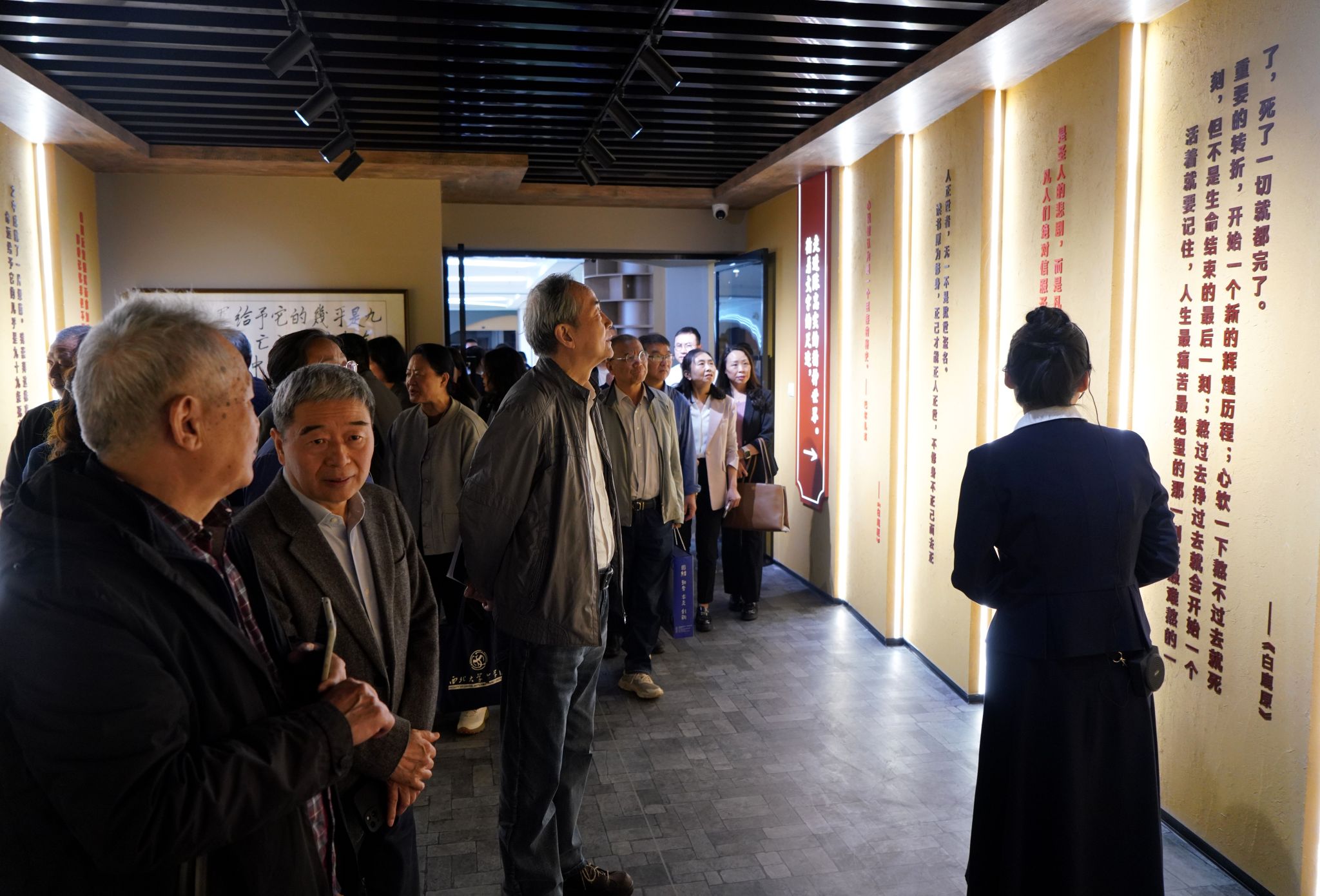 仪式结束后,参会领导和嘉宾依次进入馆内参观,合影留念。参观结束后,部分嘉宾在鄠邑校区第一会议室参加陈忠实先生逝世十周年追思会。