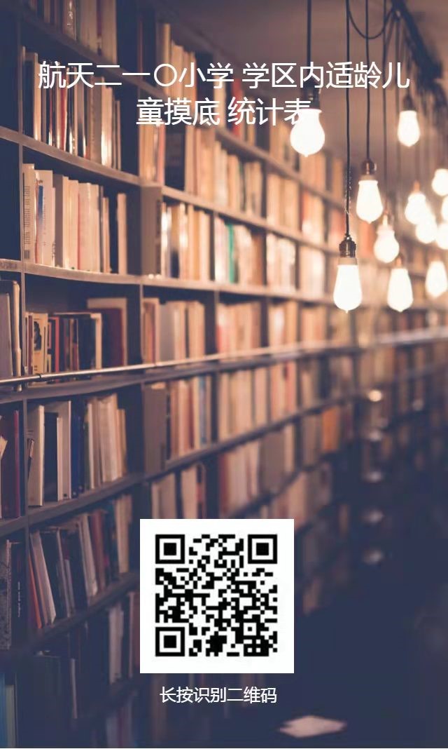 三、请有意向登记并准备入学雁塔区航天二一〇小学的适龄儿童家长,扫描下面所附二维码,按提示填写“航天二一〇小学学区内适龄儿童摸底统计表”中相关信息。家长及儿童无需到社区进行登记。
