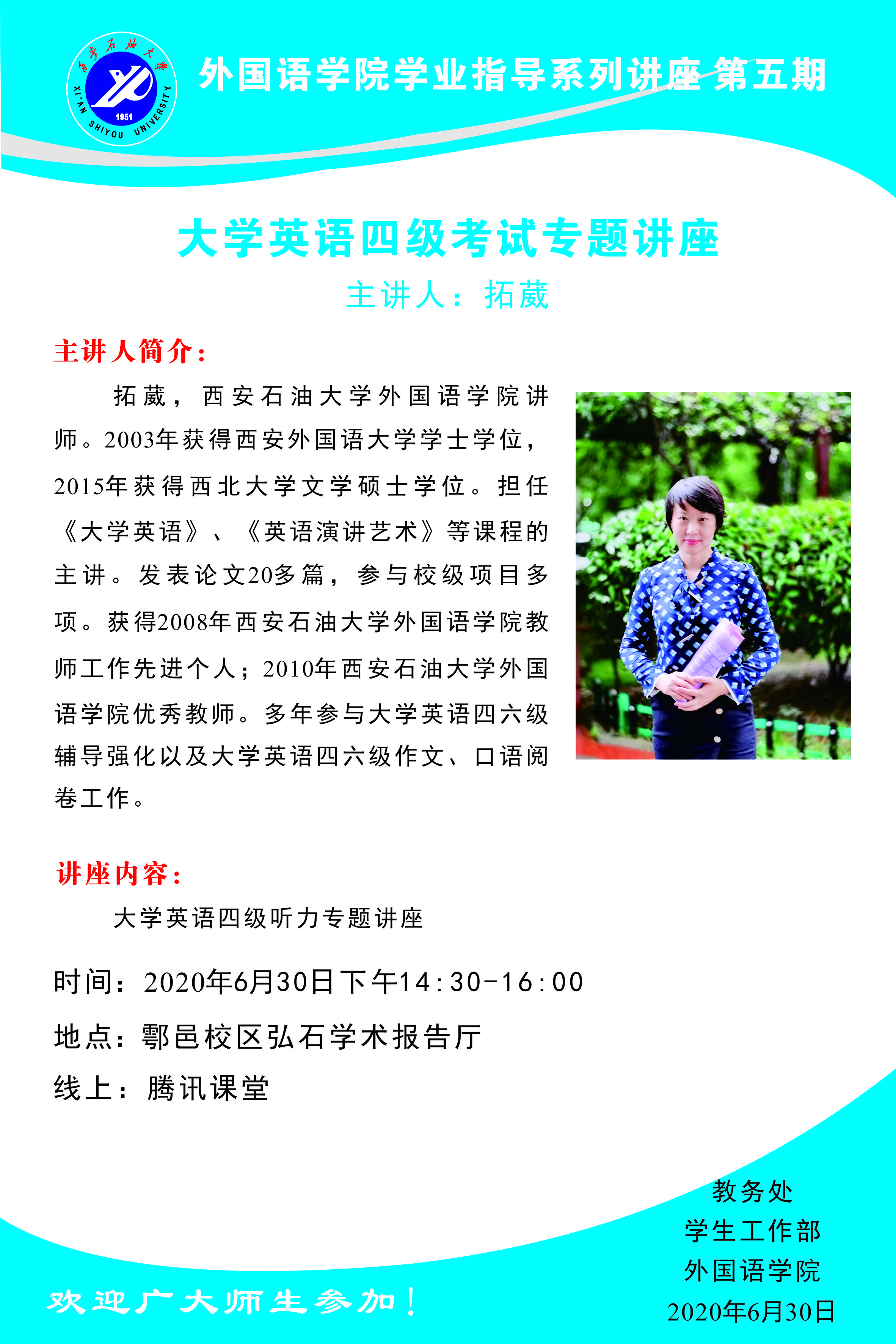 2. 大学英语四级听力专题讲座 主讲人:拓葳老师
