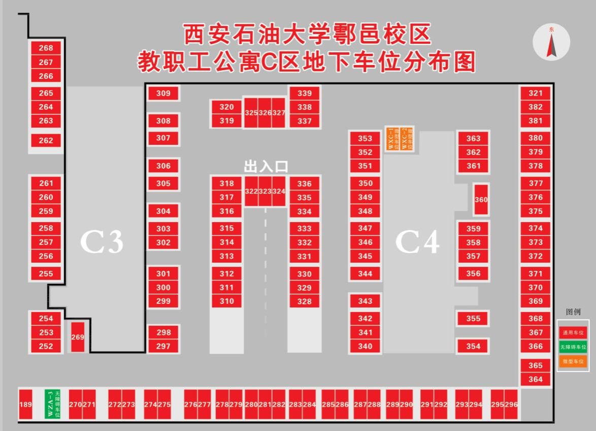 根据学校工作安排,拟定于本周五(1月17日)晚19:30在雁塔校区西阶会议厅现场分配地下车位。现将地下车位平面图、鄠邑校区地下车位符合条件的教职工排序情况进行校内第三榜公示,本周内教职工可前往鄠邑校区教职工公寓地下一层实地查看车位分布情况。如需咨询,请致电88382455,联系人岳老师。