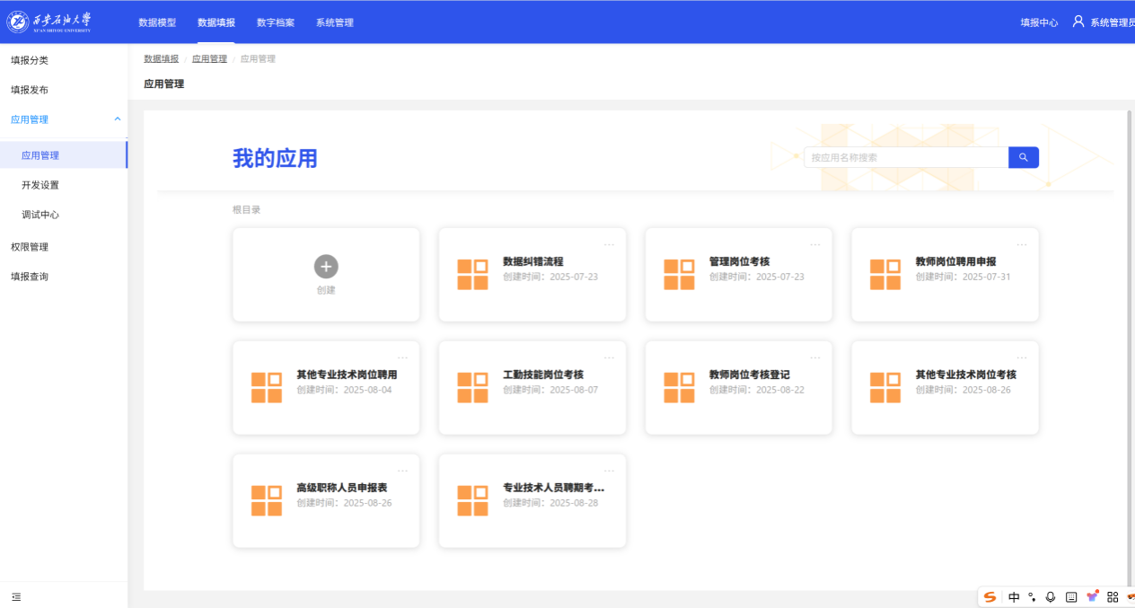 “填报中心”启用:破解“重复填报”痛点,数据共享初见成效。针对师生反映强烈的“重复填报”问题,“填报中心”打造数据聚合平台,以人事考核为突破口,联动人事、教务、科研等部门,构建教职工个人数据中心。系统已梳理12大类22张业务子表,完成年终考核、聘期考核、职称评审等8张核心考核表单的数字化改造。目前,填报中心已成功对接人事系统,支持自定义报表功能开发,满足各部门个性化数据采集需求。后期将随着教务、科研等学校各类业务数据标准化落地,将全面实现“数据一次录入、全域共享应用”,进一步减轻师生填报负担。
