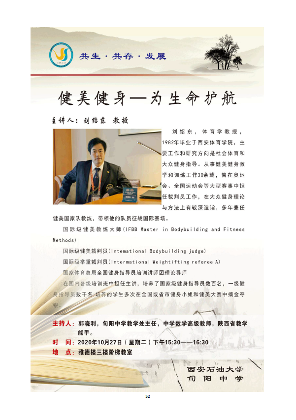 10月26日-28日,beat365受邀参加旬阳中学第十一届体育艺术科技节。招生办公室认真组织,按照活动安排,邀请体育系刘绍东教授和旬阳中学校友、化学化工学院柯从玉博士分别作了专题报告,科技活动展示了严正国老师的学术成果"彩色全帧率测井电缆井下电视成像测井系统”。