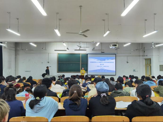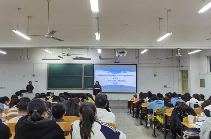 10月29日,外国语学院在鄠邑校区B112举办了2020级新生入学系列教育第三讲。邀请学院党委副书记王业青作“重新认识自己,整装再次出发”的主题讲座。2020级辅导员陈浩、2020级全体学生参加本次报告会。