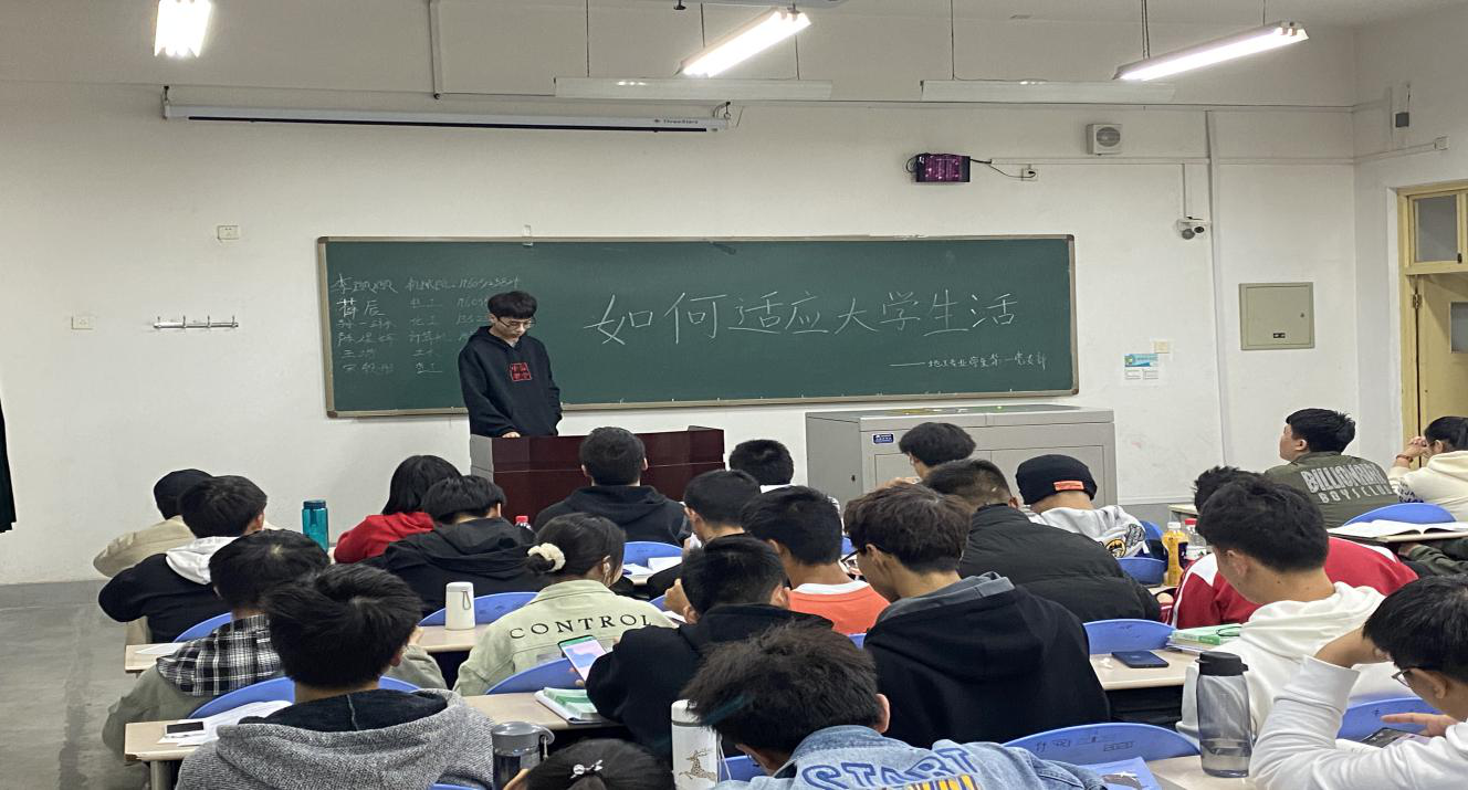 陈童同志首先为新生阐述了大学生活与高中生活的差异。他认为大学生活既是集体生活,又是独立生活,要树立正确的生活观念,就要先从思想上要独立。其次他告诉学弟学妹们要走出宿舍,积极参加课余活动,当学生会或是社团的的工作和学习有冲突时,自己需要学会平衡。这些活动可以帮助我们更加了解大学生活,帮助我们适应大学生活,也能够扩大自己的朋友圈。但同样需要自己有基本的判断分辨能力,凡事要有自己的主见和立场,不能太过于依赖他人。