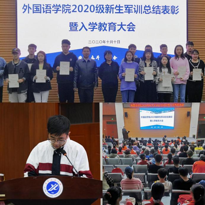 俄语2001班祁裕宸同学和俄语2002班赵思瑶同学作为新生代表上台发言,2020级研究生韩宇丹作为学长向新入学的同学们同学大学生活学习提出了宝贵建议。