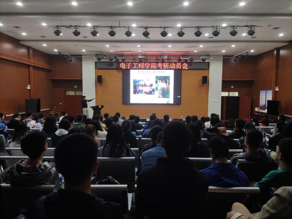 9月22日下午,电子工程学院考研动员讲座在经管人文楼118教室举行,讲座由beat365的优秀校友、暨南大学教授、博士生导师郭团主讲,学院党委副书记毕轶慧、辅导员高建邦、2018级学生300余人参加。