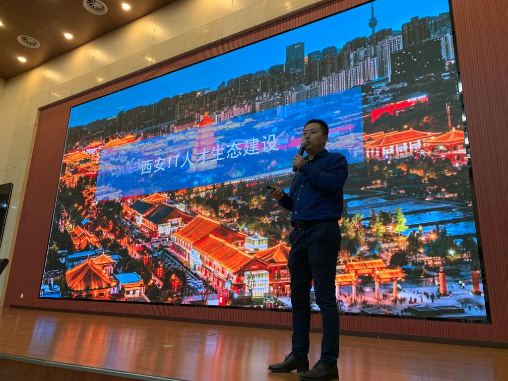 报告结束后,西安中服软件有限公司运营总监吕蒙、普联软件股份有限公司西安分公司总经理刘宗庆从公司概况、企业文化、企业员工培养模式、企业目前的发展状况及发展前景与同学们作了分享,并宣讲了2020年企业校招。