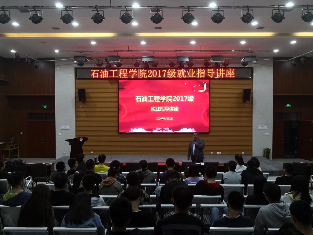 为做好我院2017级毕业生就业教育与指导工作,帮助广大毕业生全面客观地认清当前就业形势,进一步增强毕业生就业能力,石油工程学院于9月22日晚7点在经管人文楼118多功能厅召开2017级就业指导讲座。本次讲座由学生工作部(处)副部(处)长、就业指导中心副主任樊晓旭主讲,学院党委副书记张建高、毕业班辅导员孙浩哲和2017级有就业意向学生共计200余人参加。