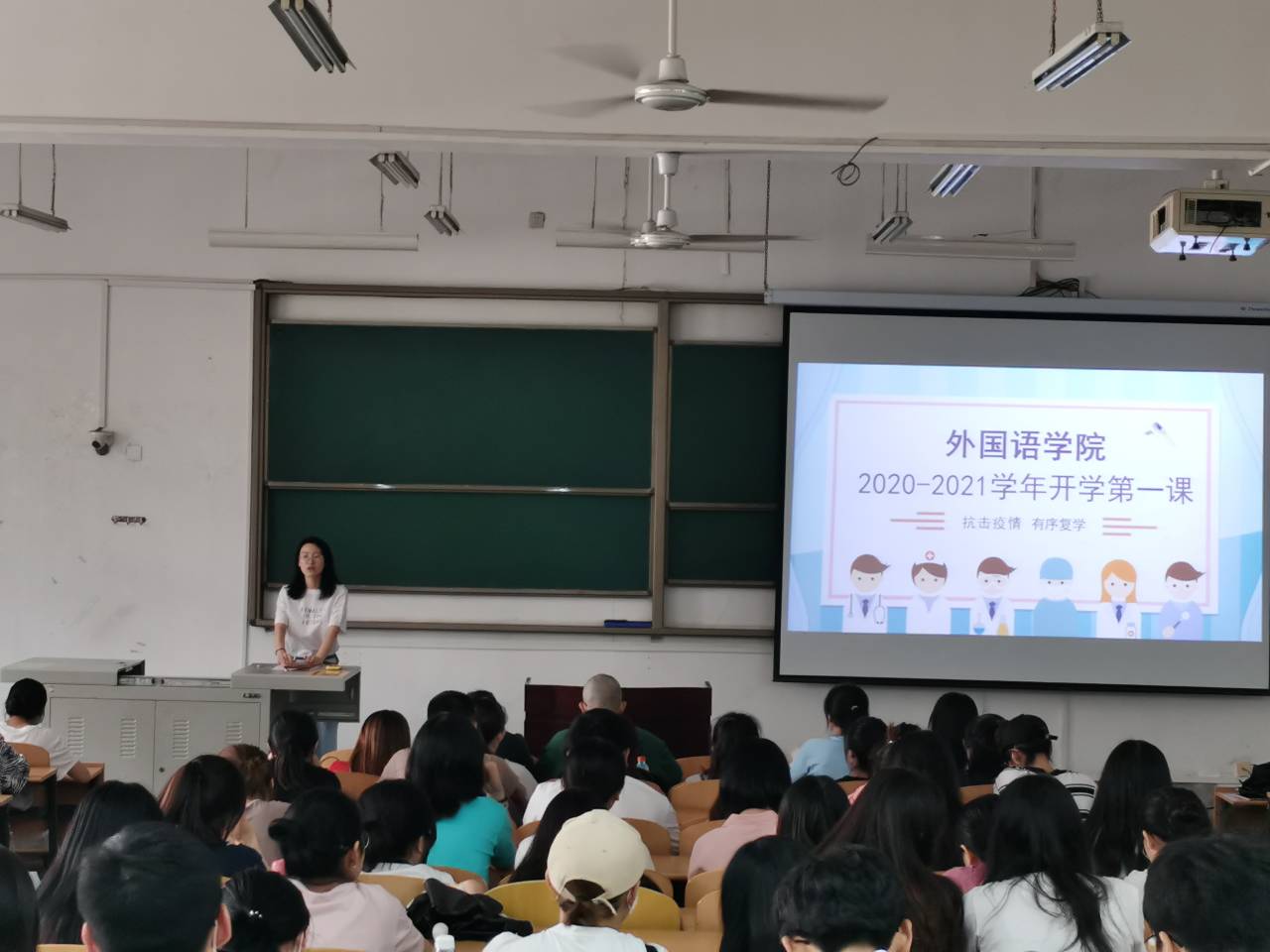 8月24—25日,外国语学院按照《关于做好2020—2021学年第一学期开学初有关学生工作的通知》要求,党委副书记王业青、学生办公室主任张帆、辅导员陶李分别在B112、B114、腾讯会议组织开展疫情常态化下的“复学第一课”。