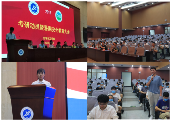 “全员”面对面交流。暑假伊始,化学化工学院2017级学生考研动员大会在鄠邑校区弘石报告厅召开。学院党委副书记高黎,环境工程系主任杨博,应用化学系副主任吴亚,学院各系副教授秦芳玲、钟汉斌、黎小辉及青年博士骨干教师孙妩娟、唐瑞源,学院全体学工干部及全体在校本科生200余人参会,会议由学院学管办主任屈敏佳主持。学院7位专业课老师结合当前形势,专业前景,培养方向和自身求学经历分别作了专题辅导,从学校专业选择、复习计划制定和专业课复习开展等方面作了专题报告,并就考研备战中问题与同学们进行交流解答探讨。随后,学院组织召开考研经验心得交流会,2020届考研(博士、硕士)优秀学生代表李茂刚、石阳、刘锦阳等作了专题考研心得分享,2017级学生代表郝攀、朱磊等作了交流发言。
