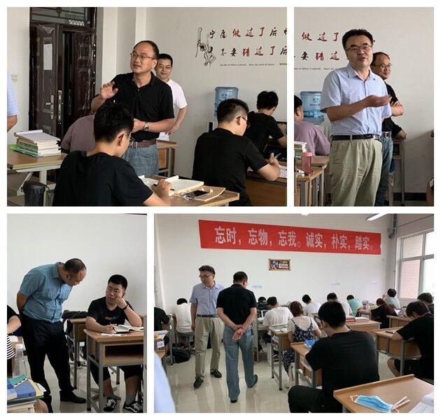 在每个考研自习室中,领导、老师们都与同学们进行亲切交谈,认真聆听和询问大家暑期在校期间的日常学习和生活情况。赵健处长对同学们提出几点希望和要求,一是要明确考研目标,切勿盲目从众,合理评估自身实际、理性选择目标院校,只有冷静剖析,量力而行,才能有的放矢;二是备战考研期间要注意劳逸结合,学会自我调节压力,适度放松;三是要不断加强与身边老师、同学们之间的交流沟通,与研友们互帮互助、携手共进,营造浓厚的学习氛围。田党宏书记代表学院对全体考研学子的勤奋刻苦、拼搏进取的精神表示肯定和赞赏,田书记表示,学院每年为考研学生提供固定教室,为同学们安心学习提供一切便利条件,希望同学们在备战考研的过程中能够充分利用有效资源,积极调整好心态,合理规划剩余复习时间,踏踏实实、稳扎稳打、坚定信念、将备战考研坚持到底。同时,由于本学期暑期时间较短,同学们要不断巩固前期线上学习的课程,协调好专业课学习和考研复习的关系,为新学期即将开始的各科课程考核打好坚实的基础。随后,刘笛副书记向同学们宣传和解读了学校对于暑期留校学生的管理规定以及后勤保障服务,同时叮嘱大家在疫情防控期间内遵守学校各项规章制度,坚持日检日报及晚间签到工作,忌吃生、冷、不卫生的食物,严防病从口入、注意身体健康,在校期间要充分利用宝贵的复习时间,科学制定学习计划,戒骄戒躁、不畏困难,为实现梦想拼搏努力。