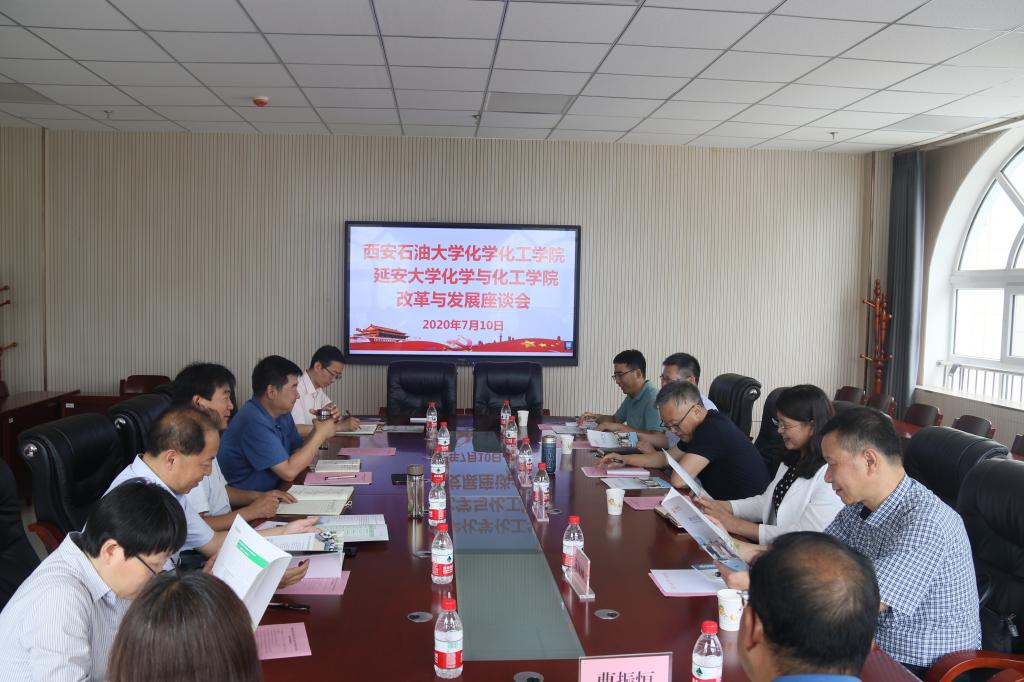2020年7月10日,化学化工学院党委书记司马文龙、院长王文珍、化学工程与工艺专业负责人黄风林、院长助理、化学工程系副主任宋绍富一行赴延安大学走访交流。延安大学教务处处长付峰、化学与化工学院党委书记舒永安、院长张琰图、副书记刘雨录、副院长张玉琦、副院长王记江、化学系主任曹振恒参加了座谈会,座谈会由舒永安书记主持。