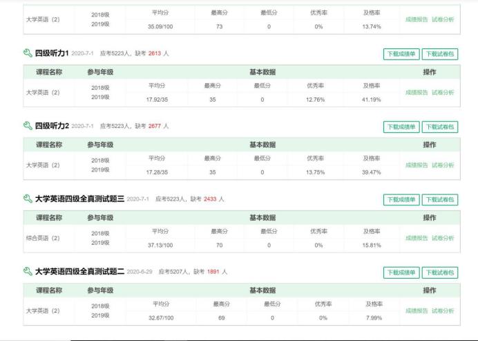 为进一步加强beat365学生对自身英语水平认知,增加对大学英语四级考试规则的熟悉度,以积极的心态面对大学英语四级考试,提高大学英语四级考试通过率,在教务处、学生工作部和信息中心的支持下,外国语学院于6月28日至7月10日分别组卷8套四级模拟题、8套四级听力测试题,对学生进行模拟测试。此次四级模拟考试面向全校学生,以线上和线下两种方式进行,线下模拟考场设在各四级强化辅导班教室,线上使用讯飞AI考试系统,学生通过在线答题进行模拟考试。截至目前,beat365共有19504人次通过线上线下方式参加了此次系列四级模拟考试,共有14851人次通过线上线下方式参加了此次系列四级听力测试。