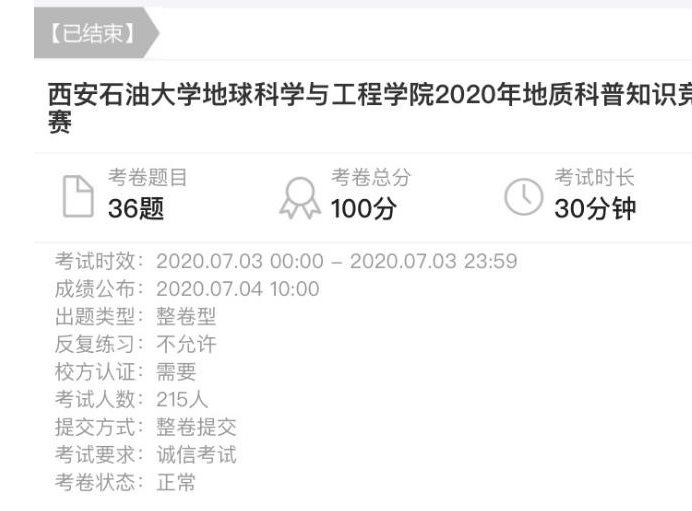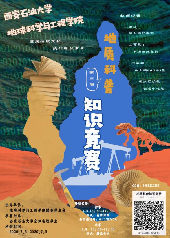 为加深学生对地质知识的了解,激发和培养学生对地质知识的兴趣,7月3日,地球科学与工程学院团委主办了以“宣传地质文化、提升综合素养”为主题的第三届地质科普知识竞赛初赛,竞赛在易班平台举行,比赛共吸引了来自全校各院系共计215学生参加。