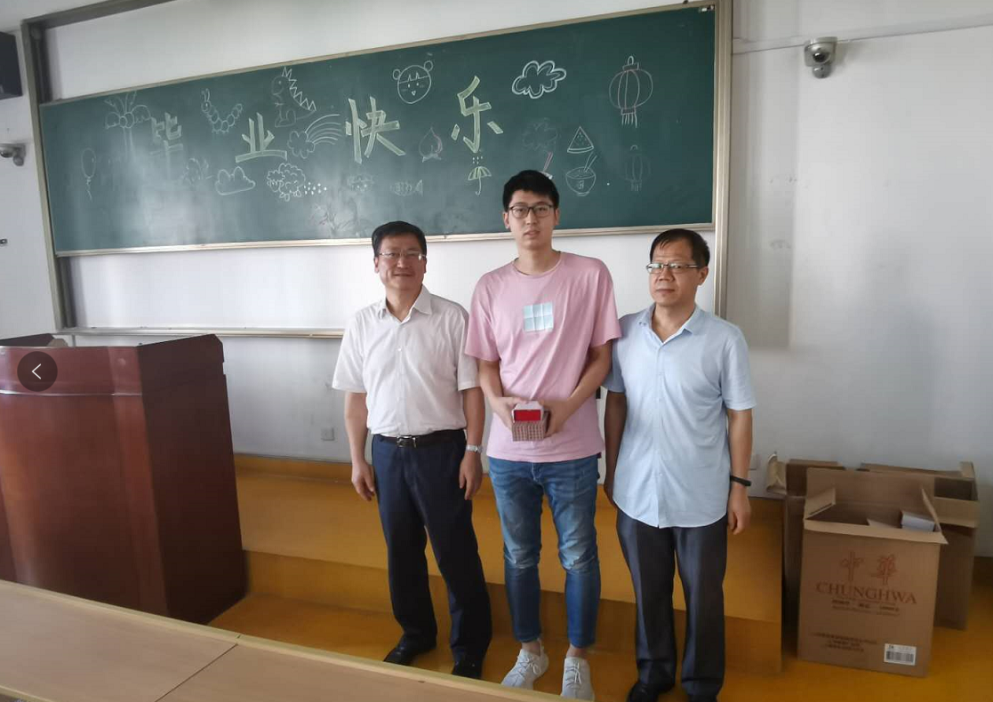 最后,书记何铖,院长仵杰为研究生们颁发学校和学院准备的毕业纪念品一滴油印章以及毕业师生合照。