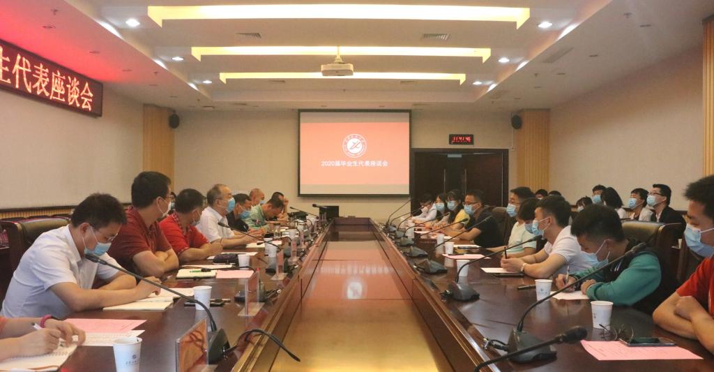 6月28日上午,2020届毕业生代表座谈会在鄠邑校区图书馆第二会议室召开。校党委副书记张木、副校长陈军斌,党政办、学工部、保卫处、校团委、教务处、后勤管理处、高评中心、图书馆等部门负责人以及毕业生代表参加座谈。