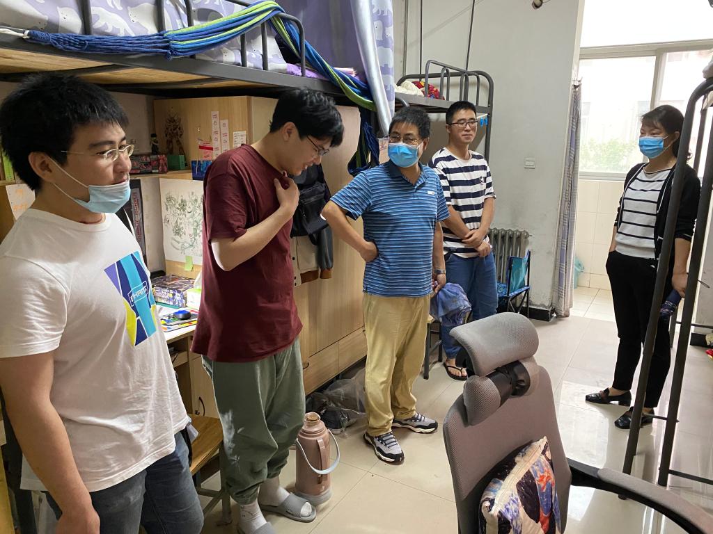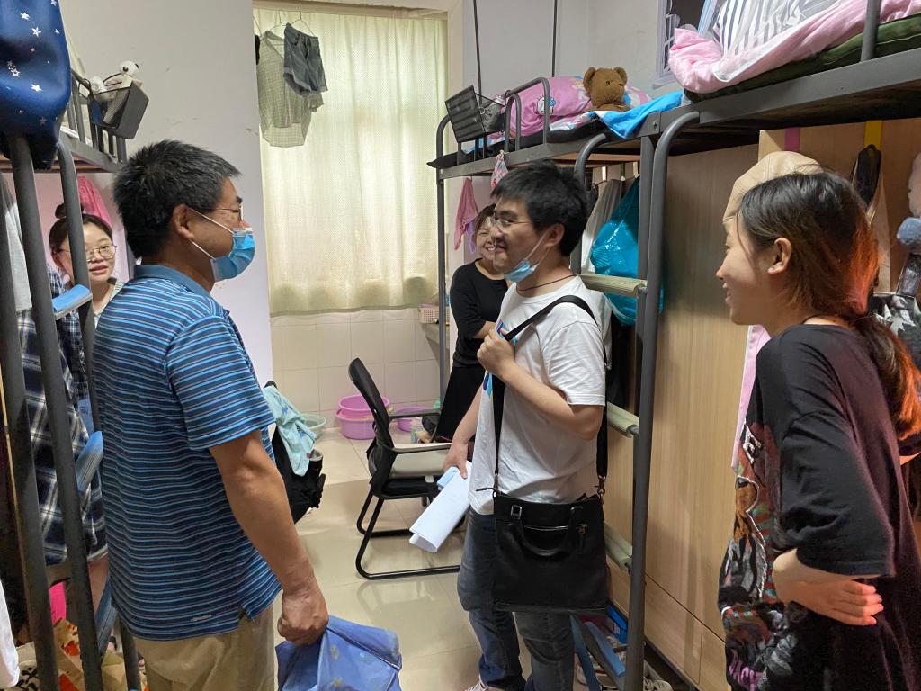随着学生返校工作的持续推进,返校学生的学习、生活和就业状况牵动着学院老师的心。6月8日上午,人文学院党委书记余小勇、党委副书记盛丹带领学院各年级辅导员深入宿舍,走访慰问了返校学生。