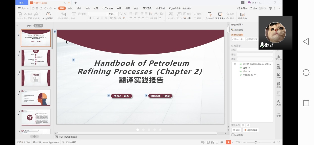 每位学生以PPT形式展示汇报开题内容并进行答辩。开题学生向答辩老师就选题意义、文献综述、主要内容、创新点及进度安排等进行了陈述,并回答老师的提问。答辩小组对各位研究生的开题报告分别进行了有针对性的现场点评,指出了存在的问题和修改意见,并要求同学们根据意见及建议认真地对选题及内容进行调整和修改。