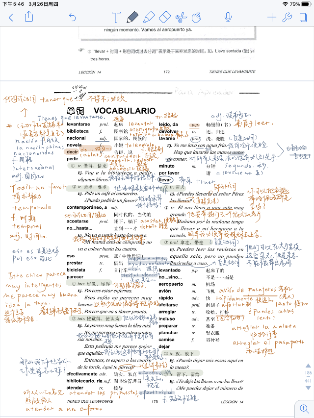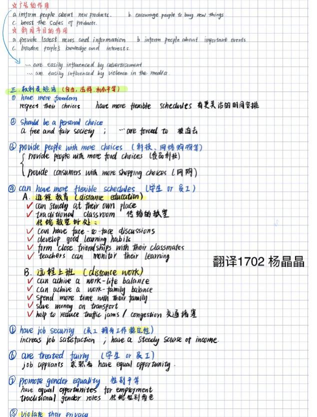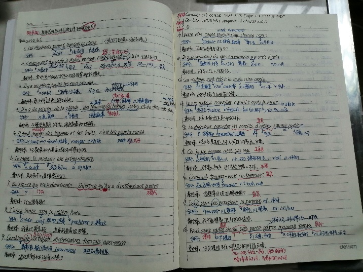 翻译专业:同学们笔迹清晰,充分利用客户端,进行无纸化学习,笔记也像绘画一样色彩斑斓,重点清晰。