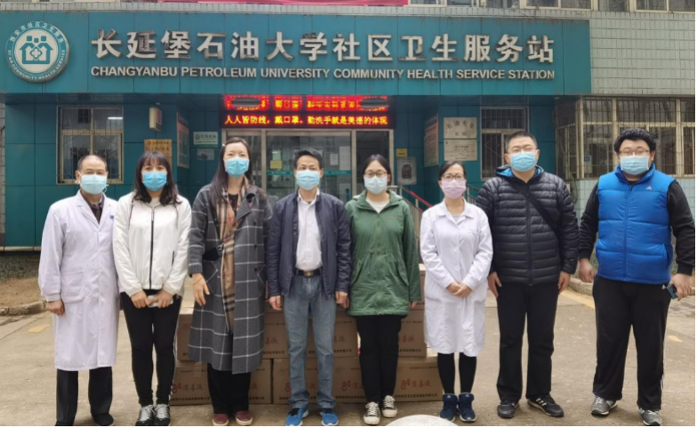 2020年3月28日下午,经济管理学院商务1801班贾欢煦同学在父亲的陪同下从咸阳来到学校捐赠疫情防控物资。国有资产处、校医院代表接收捐赠。