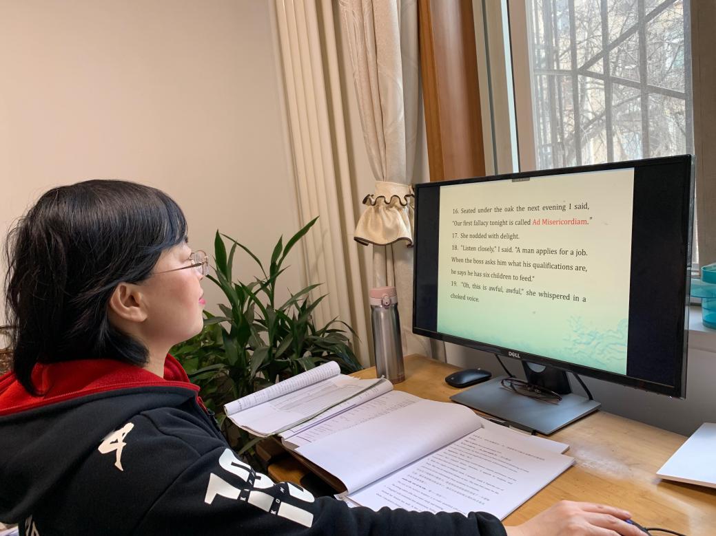 毕莹老师说:“在线直播课程在腾讯会议app的支持下有序合理开展。绝大多数学生都能够积极参与课堂讨论,个别学生甚至表示这种回答问题方式让他们觉得更自在、更自信。看来乐于接受新事物的学生们对在线直播上大学英语课很认可,并且操作起来适应力相当强。虽然对于老师来说也是一个new challenge,但只要所选平台能够保证网络效果,我觉得很好,这种挑战我很喜欢!我会继续探索有利于在线直播课程的各种教学方法,力争在疫情防控时期保证大学英语教学效果!”