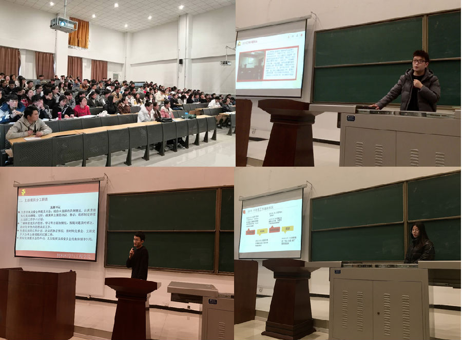 在学生党支部书记述职评议会上,张成文等9名学生党支部书记逐一向学院党委及全体学生党员报告了一年来的支部工作情况。与会党委委员为各支部进行了评议打分。