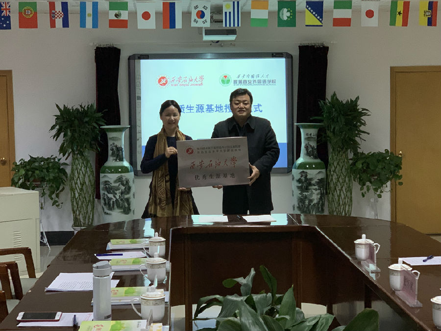 12月30日,学生心理成长指导中心主任肖琼、教务处招生办公室主任王刚一行2人赴西安外国语学校开展招生宣传和优秀生源基地授牌工作。