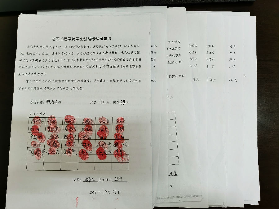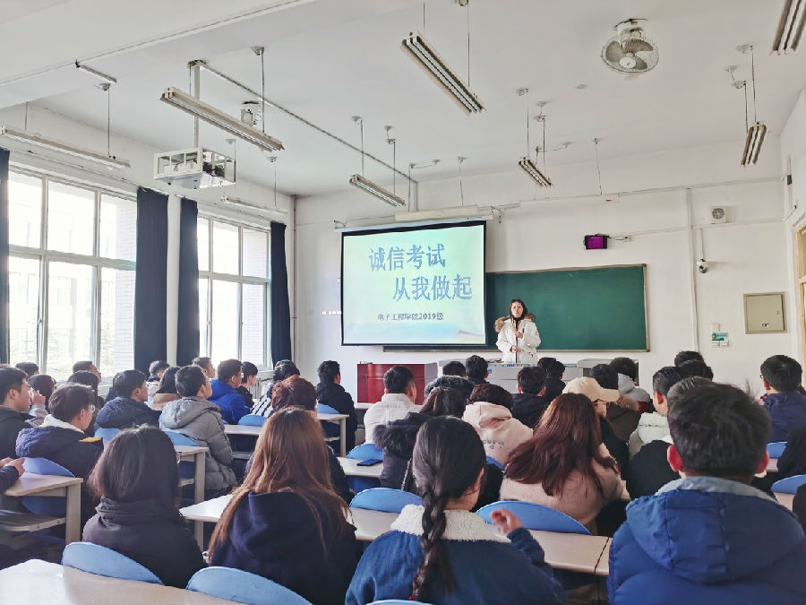 2019年11月29日——12月25日电子工程学院2019级以专业为单位分别召开了“诚信考试,从我做起”学风考风推进专业大会。此次大会旨在提倡同学们树立良好品质,在学习生活中坚持“诚信为本”,养成认真备考,诚信参考的良好学习习惯。